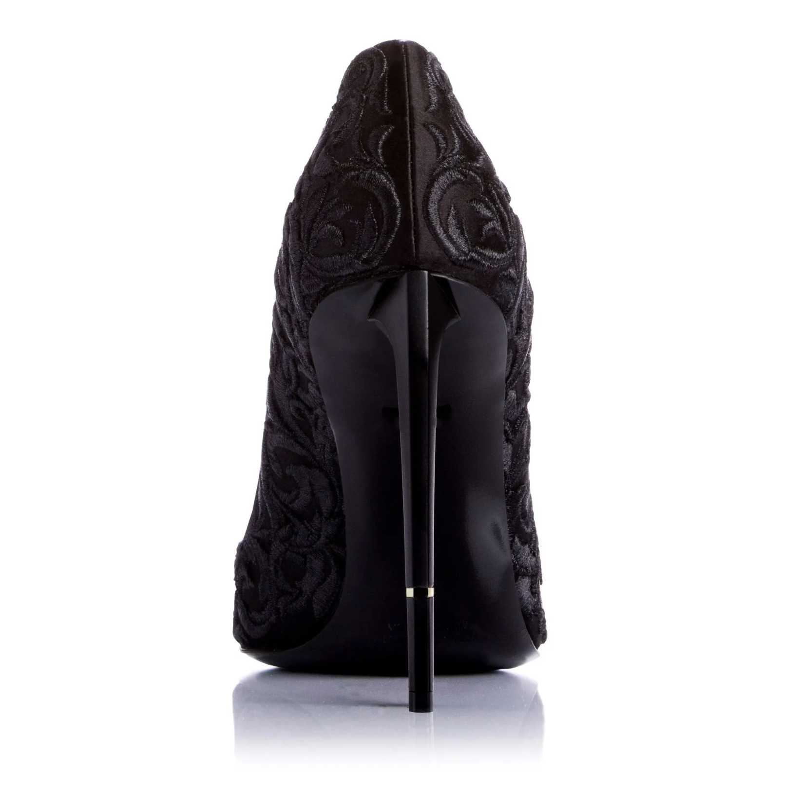 Indulge in luxury with the Cannes Heels. These silk embroidered pointed toe high heels will elevate any outfit and make you stand out at parties and weddings. The shallow mouth and single shoe design exudes elegance and sophistication, making them the perfect addition to your wardrobe. Elevate your style with the gorgeous pair today!