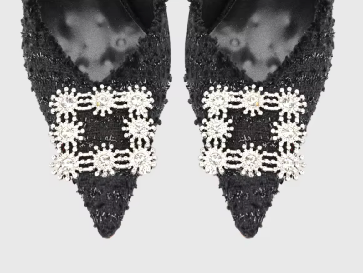 Discover the height of elegance with The Carlton Stiletto. These luxury women's shoes feature a striking weave design, adorned with sparkling rhinestones and a crystal diamond buckle. Step into timeless style and elevate any outfit with these exquisite high heels, perfect for any party or special occasion.