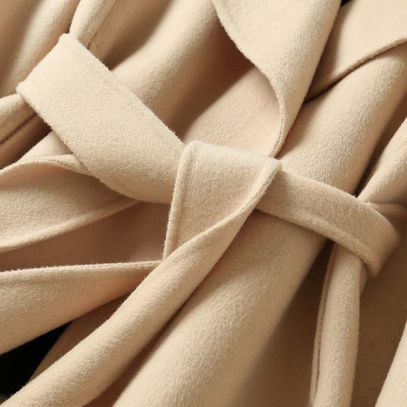 Stay warm and stylish this fall and winter with our popular lace-up, double-sided Emery Wool Coat. Its mid-length design offers a slim fit, perfect for a slimming look. Don't miss out on this must-have coat for the season!