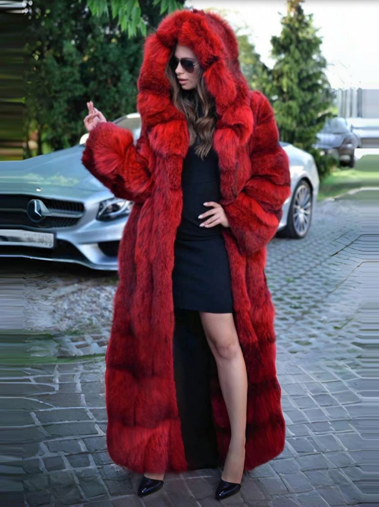 Embrace the bold elegance of the Haussman Faux Fur, a statement piece that commands attention. This luxurious long coat features a dramatic hooded silhouette and full-pelt construction that delivers uncompromising warmth without the weight. The single-breasted design flatters with a defined waistline, while functional pockets keep essentials close. Crafted from premium faux mink and faux fox fur blends, it's your armor for autumn and winter streets—audacious, unapologetically glamorous, and impossibly soft against the skin.