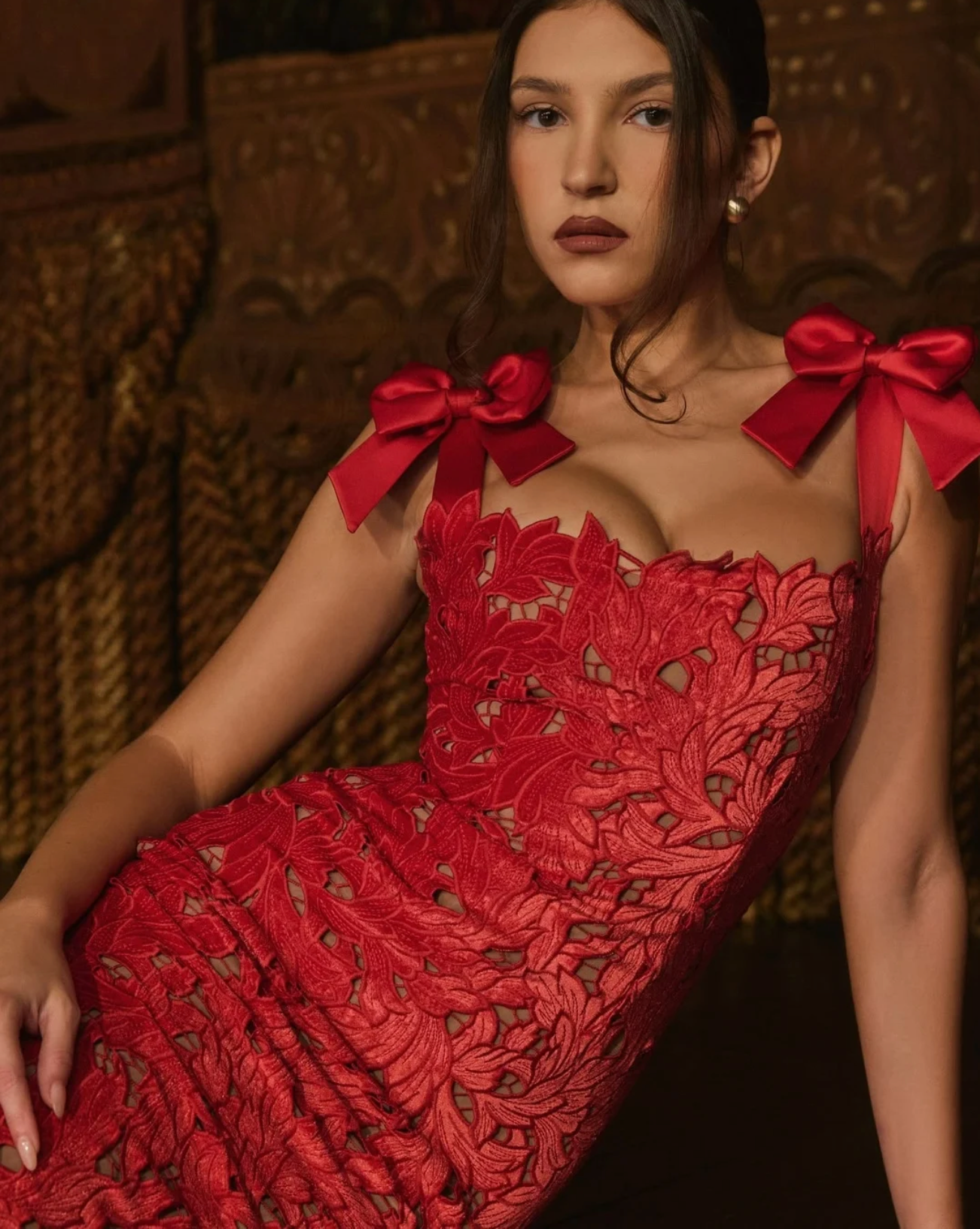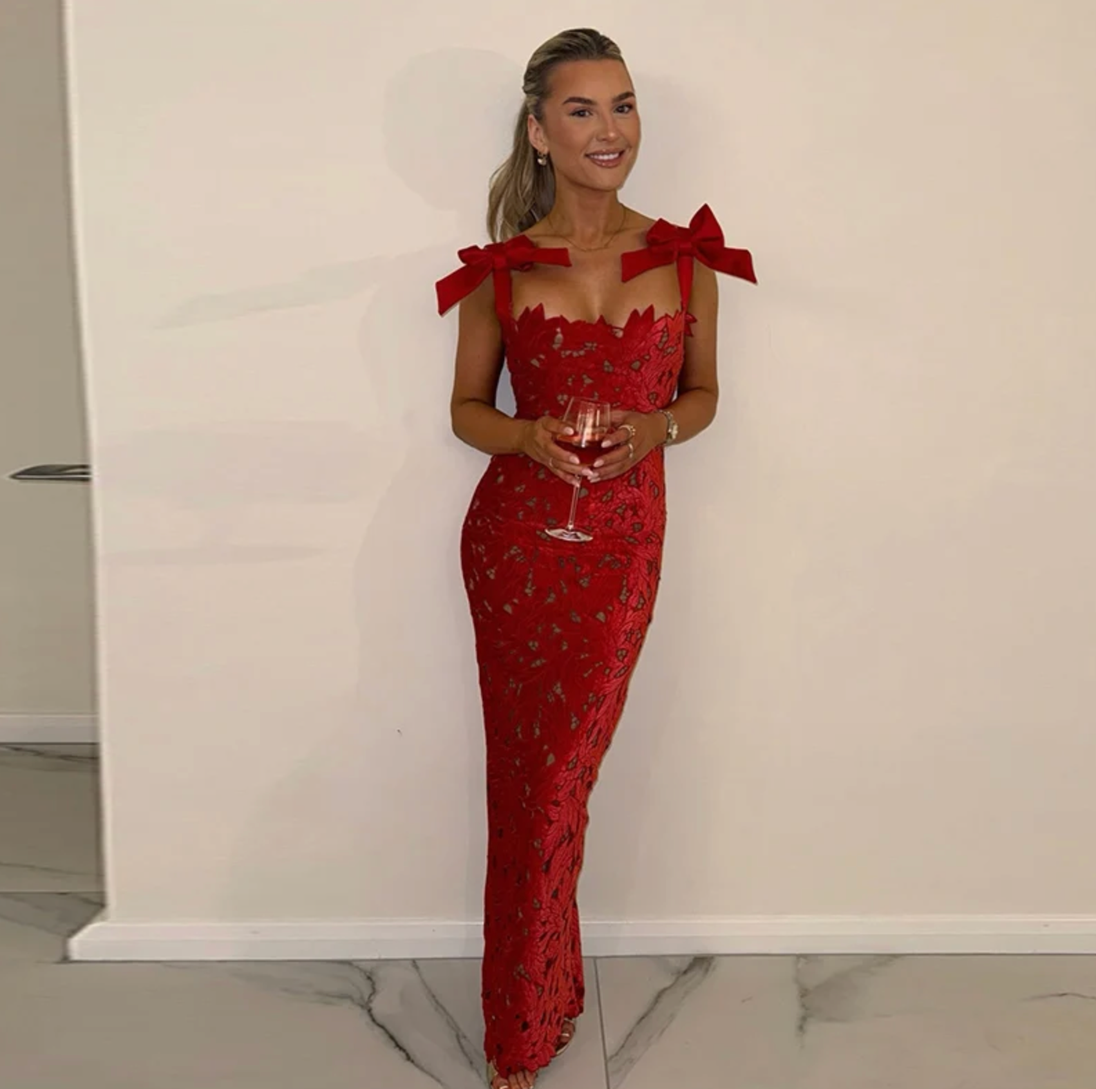 Experience elegance and luxury with our Dove Mountain Dress. This stunning dress is designed for sophistication, featuring a beautiful red maxi design and delicate spaghetti straps. Its bodycon fit will hug your curves for a sexy and confident evening look. Perfect for your next gala or Christmas party.