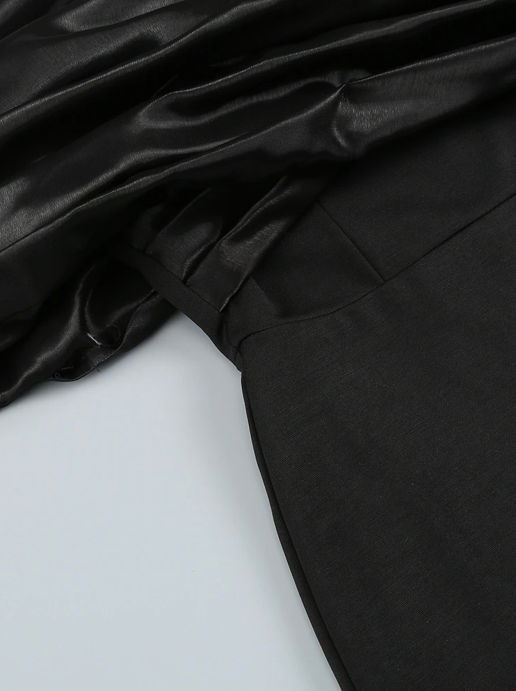 Experience timeless elegance with our Encanto Eterno Gown. This black satin mermaid dress features hard gauze ruffles and a card shoulder neckline, making it the perfect choice for formal occasions. Elevate your style and make a statement with this sophisticated and exclusive gown.