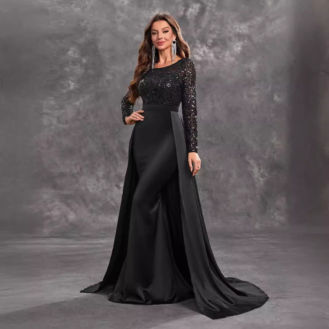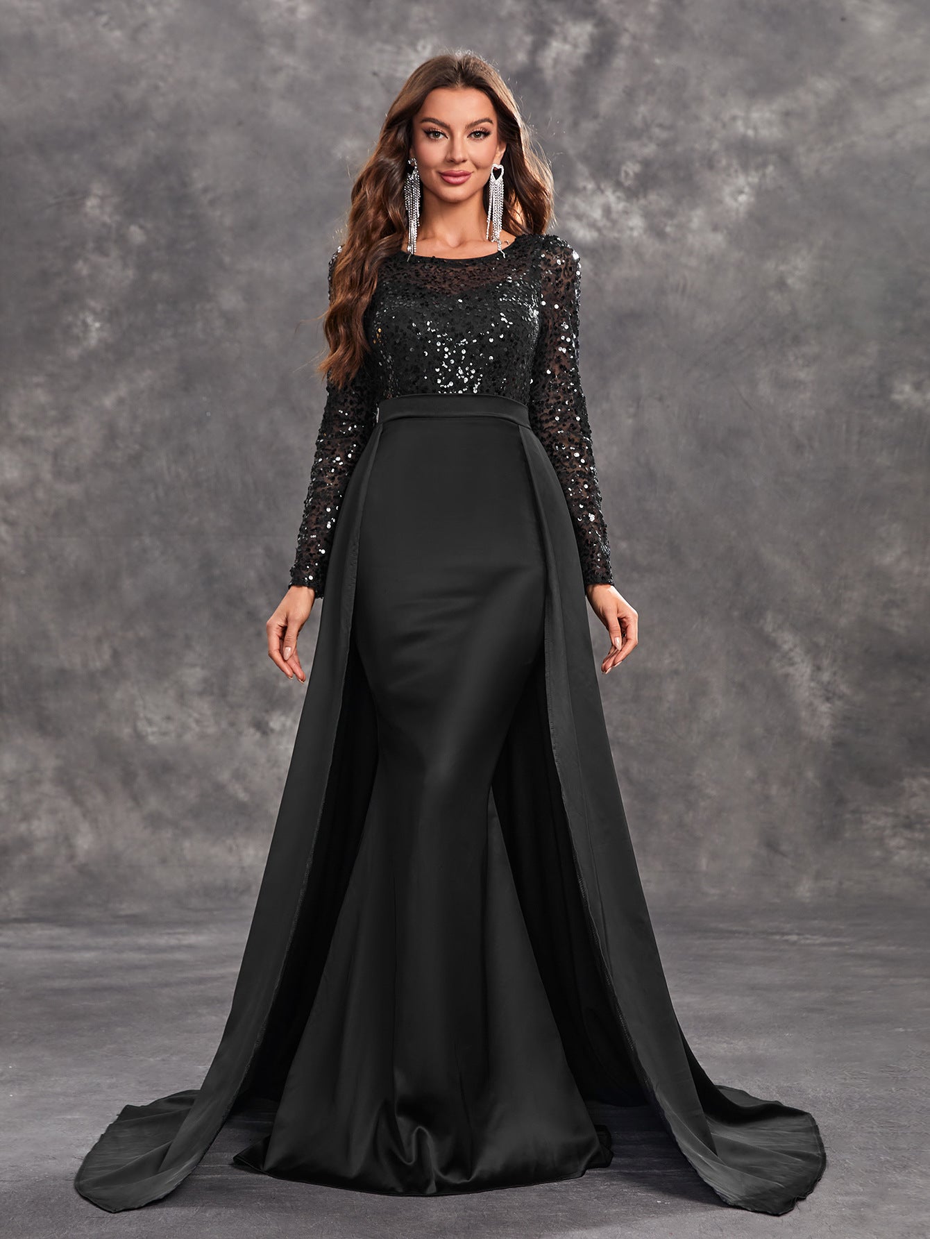 Get ready to sparkle and shine at your next party with this Milo Formal Gown! The sequined long sleeves add a touch of elegance while the round neck and black color keep it sophisticated. Perfect for any formal occasion, this dress will have you radiating confidence all night long.