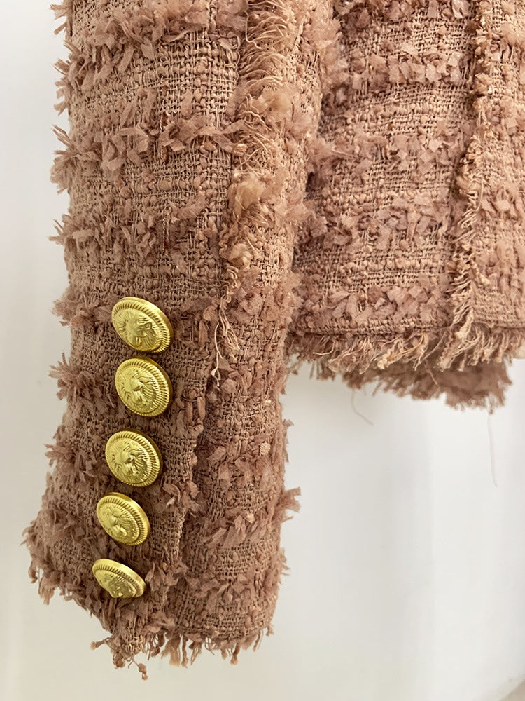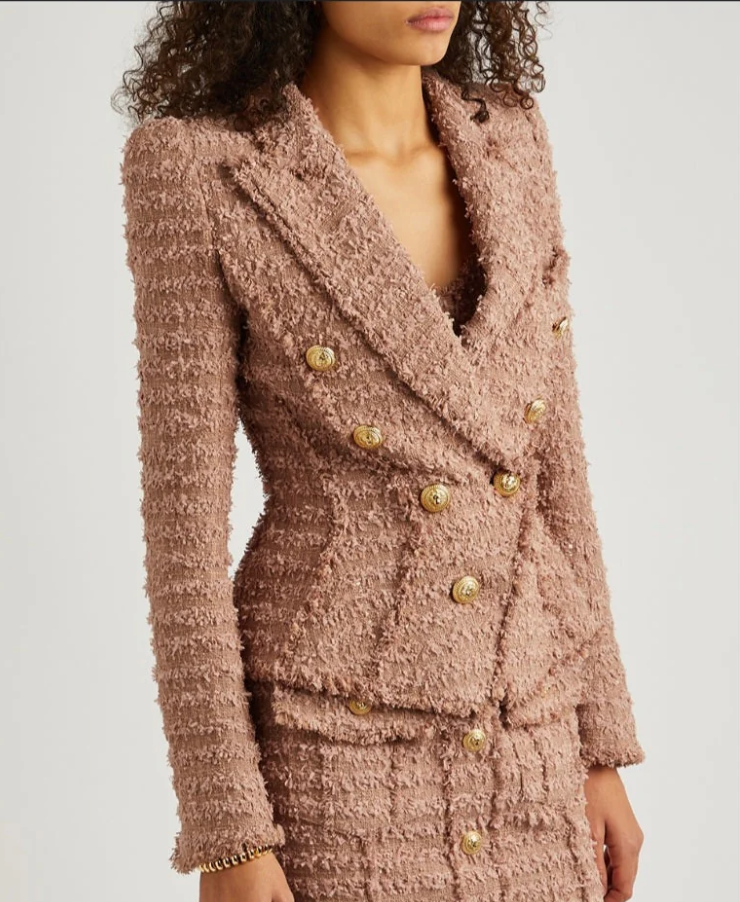 Introducing our Isla Hunton Blazer set. Elevate your look with this elegant and exclusive blazer, featuring luxurious tassels and fringe details. Perfect for the colder months, this blazer will keep you warm and stylish. A must-have for any fashion-forward individual.