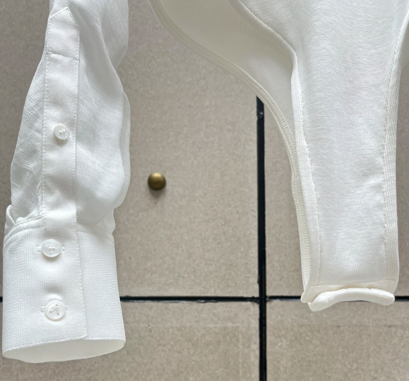 Introducing our Azur Top, designed for those seeking luxury and elegance. Crafted with a double layer fabric, this top offers not only comfort but also a chic and sophisticated look. The back hollow out design adds a touch of exclusivity, perfect for the summer season. Elevate your style with this commuter long sleeve bodysuit top.