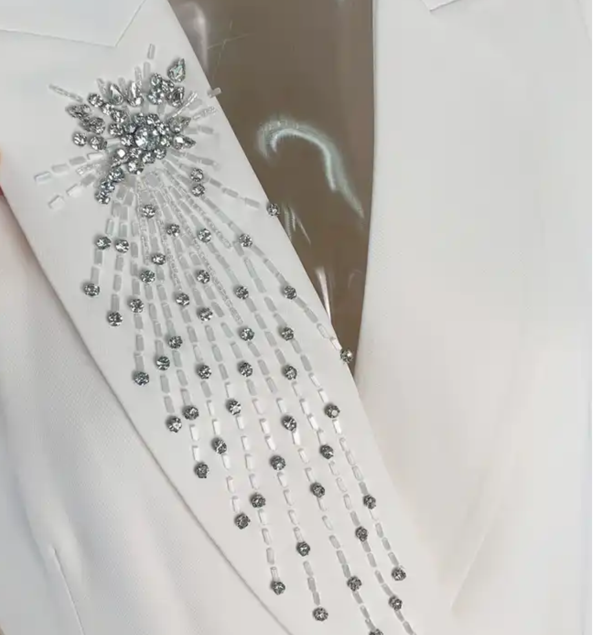 Make a bold statement with our Brienz Formal Jacket. This elegant and luxurious jacket features long sleeves and is adorned with sparkling crystals and intricate beading. Perfect for formal occasions, this blazer exudes style and confidence. Take risks and stand out from the crowd with this stunning piece!