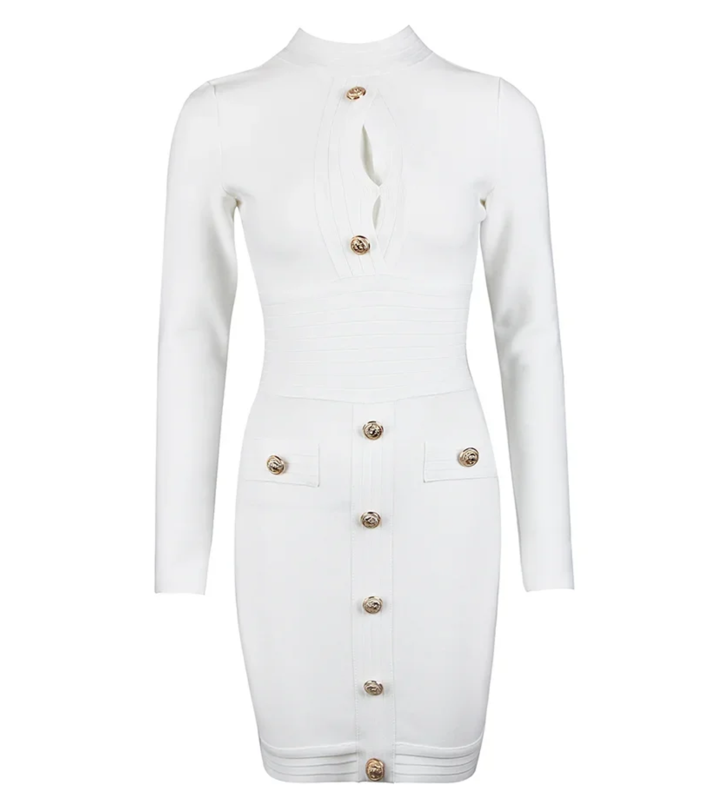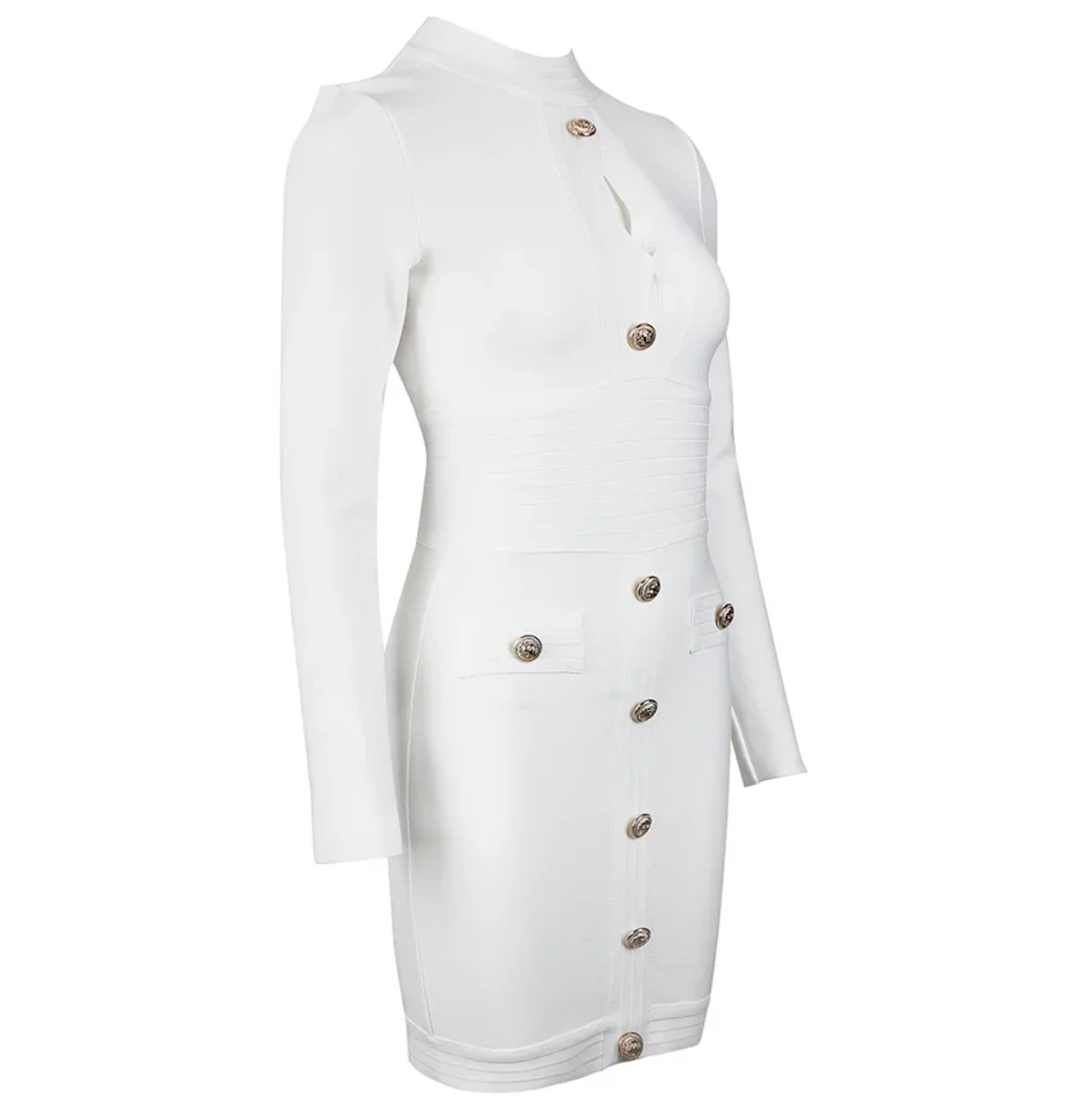 Indulge in luxury with our stunning Capadoccia Dress. Crafted for the woman who loves to make a statement, this red bandage dress features a V-neck and bodycon silhouette that will accentuate your curves. The long sleeves and button detailing add a touch of elegance to this mini dress, perfect for any summer party or event. Elevate your style with this celebrity-worthy piece.
