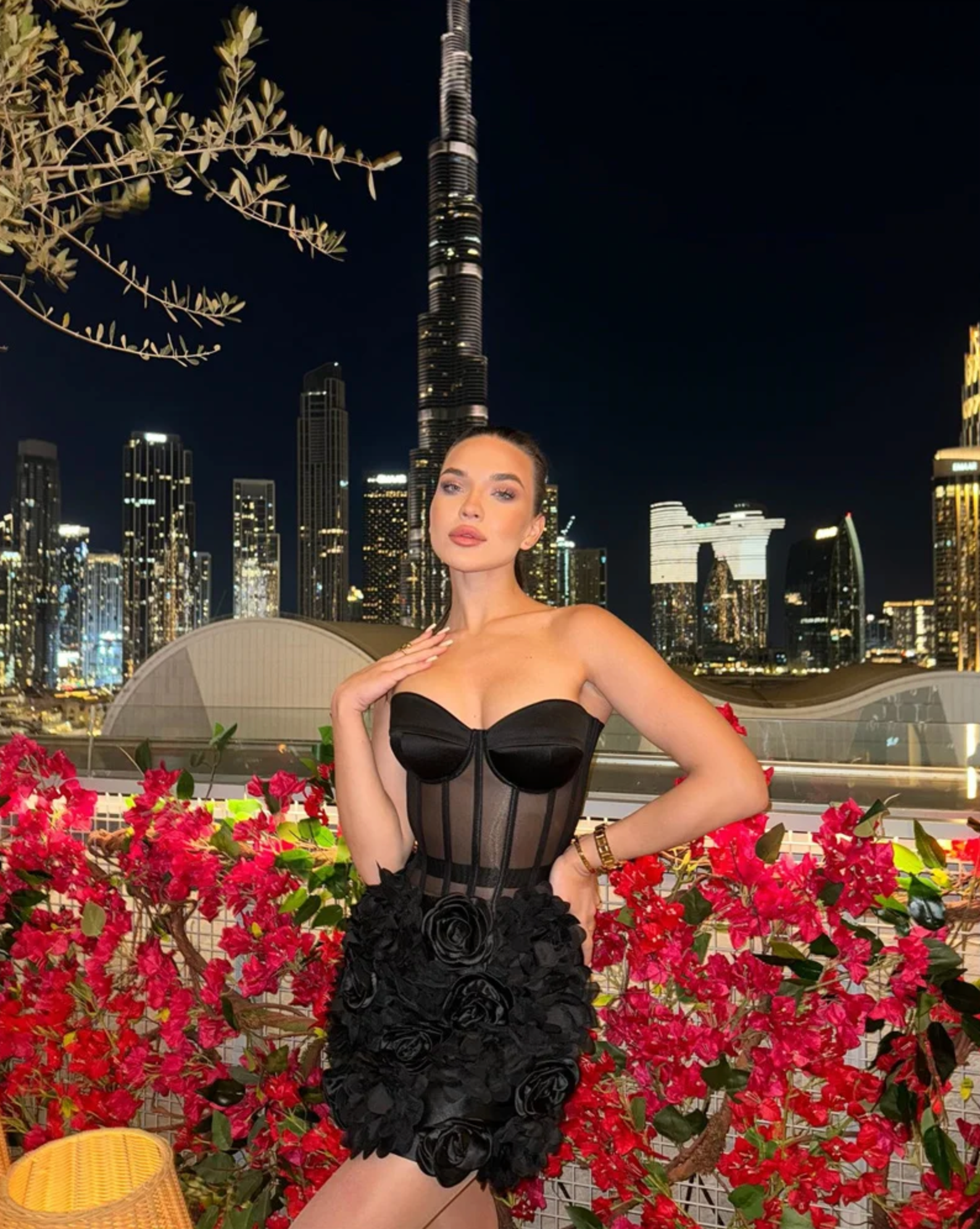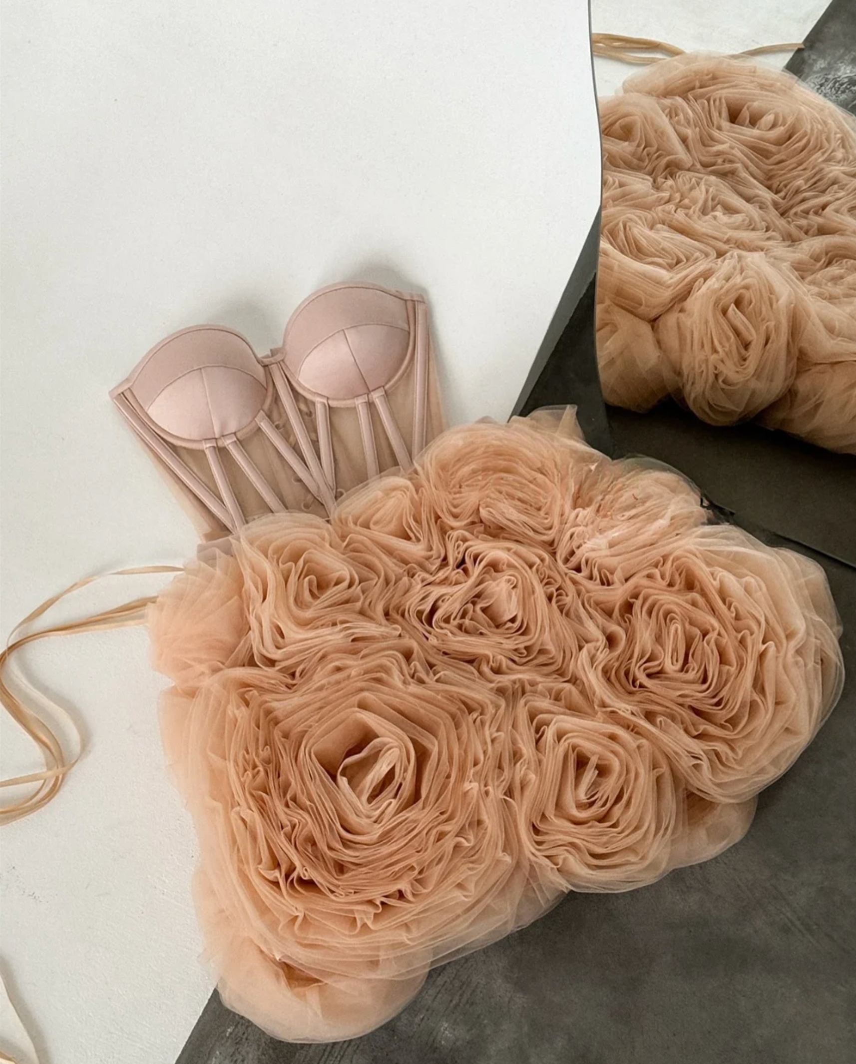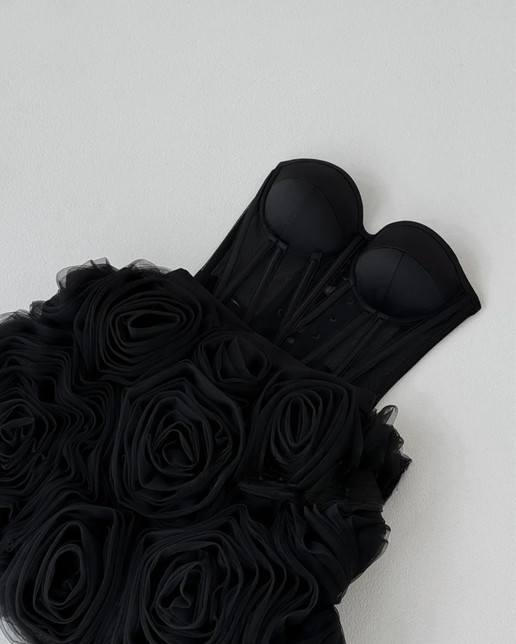 Step into the spotlight with the Chaouia Mini, a daring blend of elegance and bold design. This sweetheart neck mini dress features intricate 3D floral appliqués and delicate lace, creating a captivating illusion effect. Crafted from luxurious silk, it hugs the natural waistline and flows into a tea-length sheath silhouette.