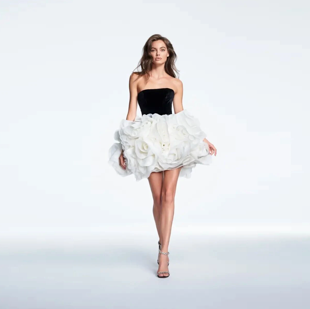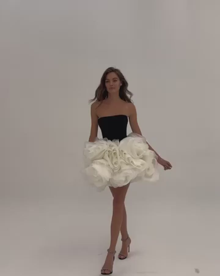 Command attention in the Countach Mini – a dangerously seductive statement piece where "limited edition" means you'll be the only one dominating the room. This isn't just handcrafted; it's weaponized fashion with strategically placed couture flowers creating an illusion that's both innocent and provocative. The strapless design doesn't just showcase your décolletage – it celebrates it, while the built-in bra offers just enough support for fearless confidence. Wrapped in sumptuous velour that begs to be touched, this polyester powerhouse hugs your curves with its empire waistline before ending at a hemline that makes legs look endless. Whether you're turning a birthday into your personal runway, upstaging the bridesmaids at a wedding, or simply being the most unforgettable presence at any party, this isn't just bridal-inspired – it's desire materialized.