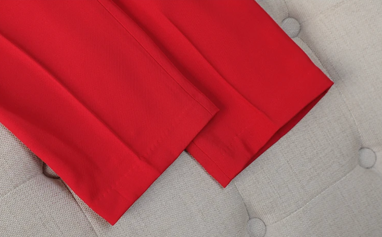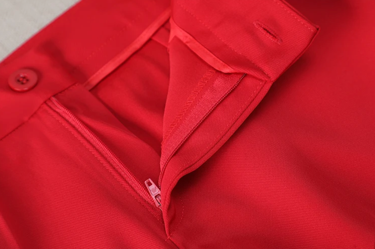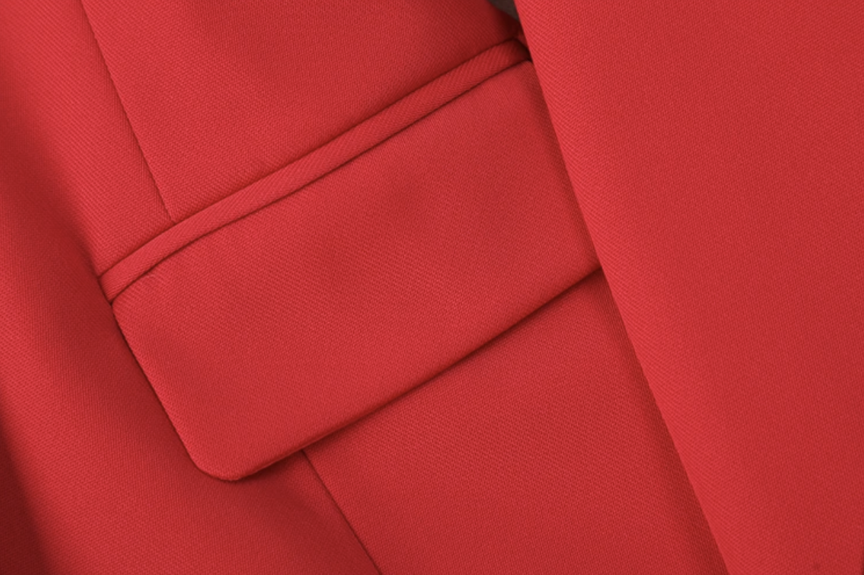 Indulge in luxury with Franco Vocem's Autumn Winter Red Ladies Pant Suit. This sophisticated 2 piece set features a tailored blazer jacket and trouser, perfect for the business-minded woman. Elevate your work wardrobe with this exclusive suit, designed for ultimate comfort and professional style.