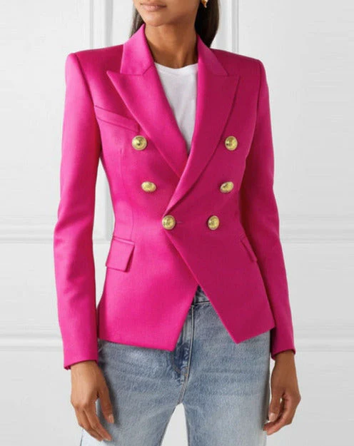 - Fuchsia Long Sleeve Blazer with gold buttons