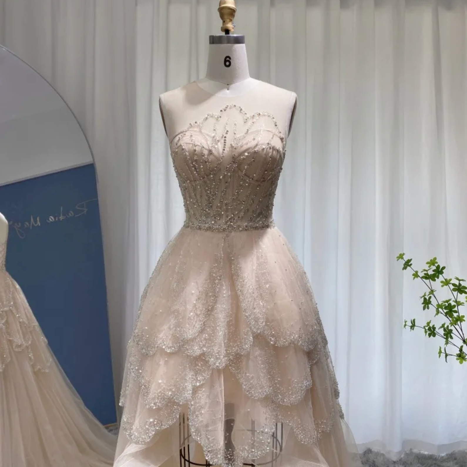 Command attention in our Governo Vecchio Gown—a champagne-hued rebellion against ordinary evening wear. This audacious Dubai creation doesn't just invite glances; it demands them with its provocative high-low silhouette. The tiered skirt teases with a shorter front while the back dramatically cascades into a statement-making train. This Arabic-inspired masterpiece isn't for wallflowers—its beading, rebellious ruffles, and unapologetic scalloped neckline transform you from attendee to main event. Sleeveless, floor-length, and crafted in polyester, this A-line sensation turns prom nights and special occasions into your personal runway