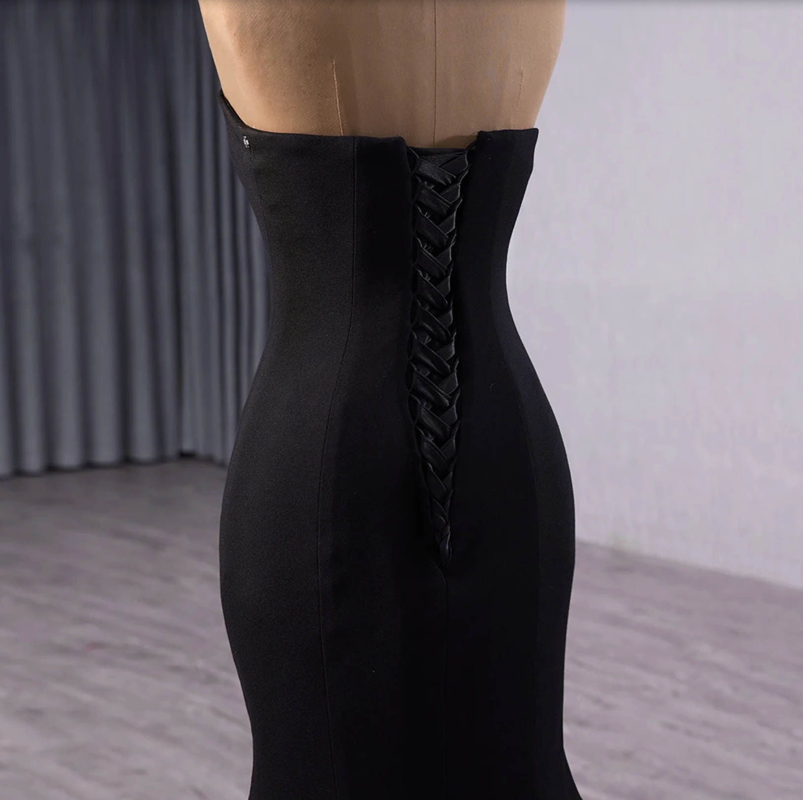 Command the room in the Hepburn Audrey Gown, a daring custom creation crafted from rich toasted vintage velvet. This sleeveless masterpiece features a striking fishtail silhouette that sculpts your figure and a lace-up closure for a flawless fit. With delicate lace and tulle accents, this floor-length gown redefines sophistication and ensures you dominate any party or banquet with fearless elegance.