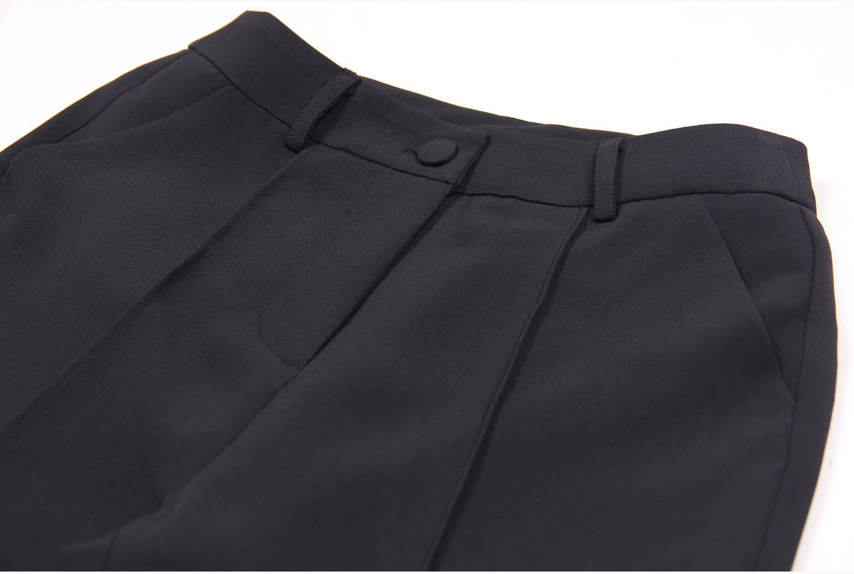 This sleek high-rise business suit 2-piece set features a long-sleeved shirt and pants, exuding elegance and professionalism. Crafted with advanced-quality fabric, this suit ensures both comfort and durability, making it suitable for long hours at the office or important business meetings.