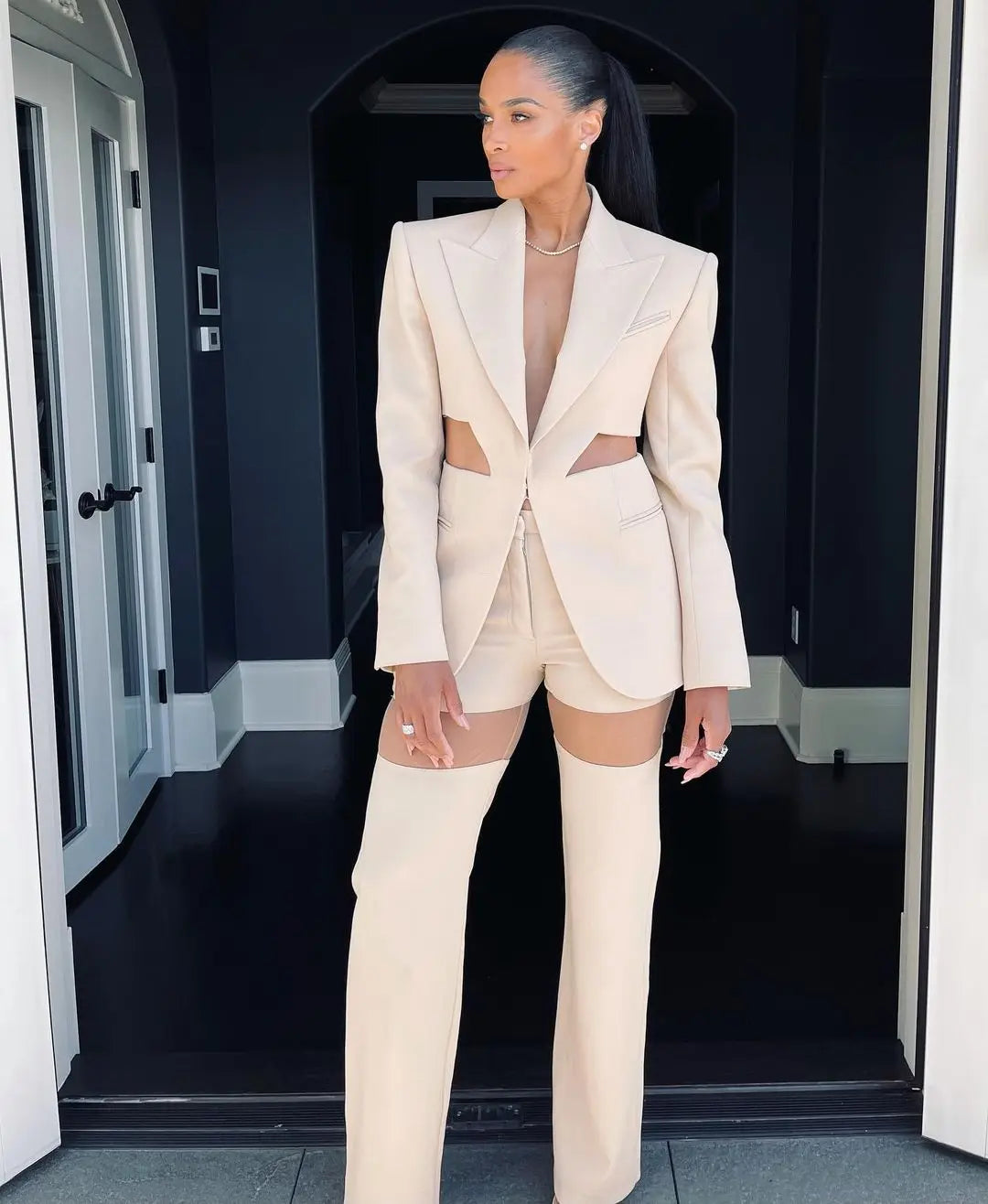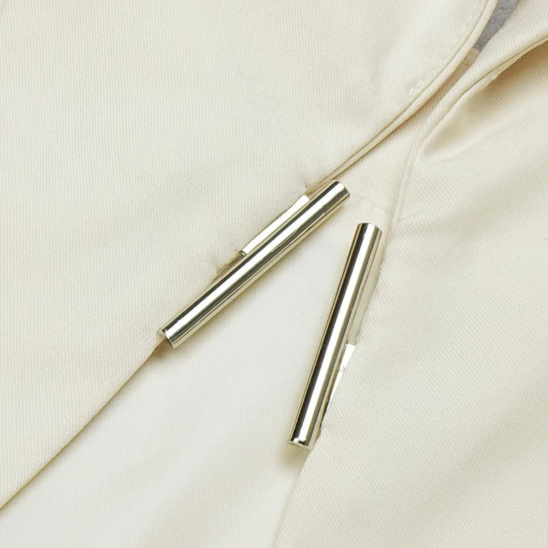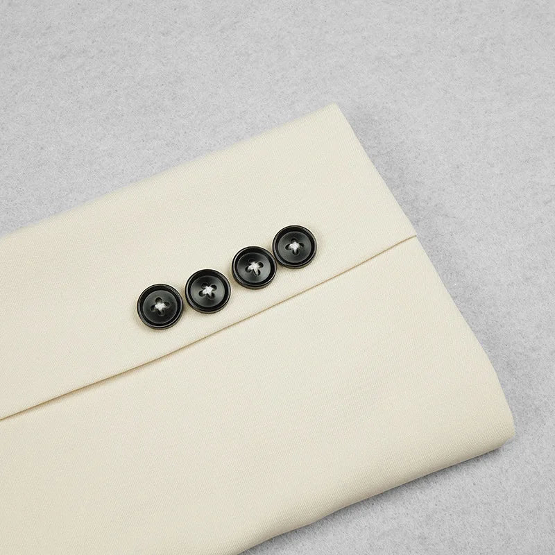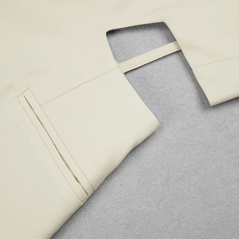 Indulge in the exquisite elegance of our Bord Du Lac Tremblant Tuxedo, featuring a cut-out design and a crisp white color. Perfect for the sophisticated woman who appreciates luxury and style. Elevate your wardrobe with this chic and timeless blazer that is sure to make a statement.