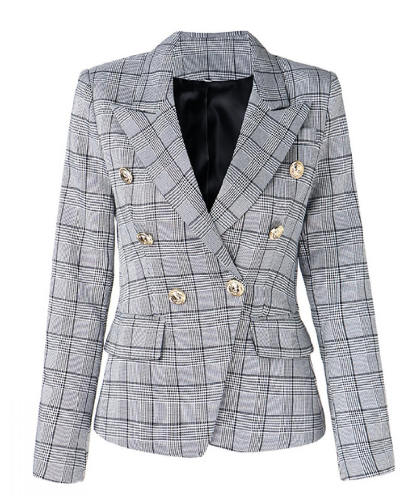 Elevate your wardrobe with our stunning luxury striped business blazer featuring elegant gold buttons on the front. This versatile piece is perfect for adding a touch of sophistication to any outfit, whether you're heading to the office or a special event. Made with high-quality materials, this black/white striped business blazer is both stylish and comfortable, making it a must-have addition to your collection.