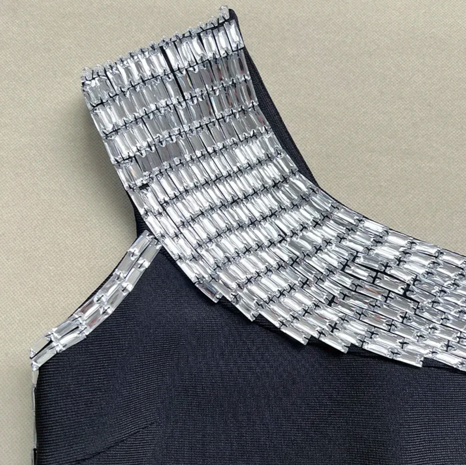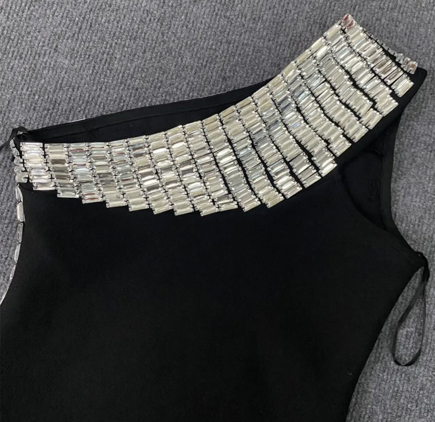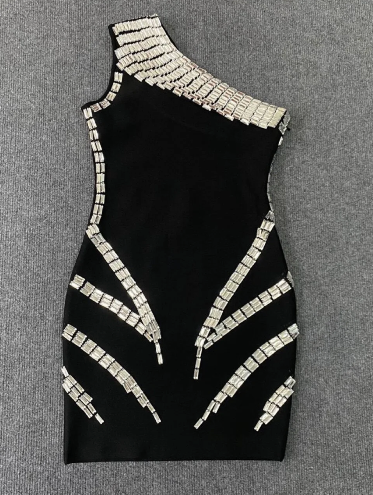 The Mage Dress is a luxurious and exclusive black bandage dress that exudes sophistication. Its one shoulder design, diamond details, and bodycon fit create a sensual and elegant look. Made with high-quality materials and a runway-inspired design, this dress is perfect for a sophisticated and glamorous evening out.