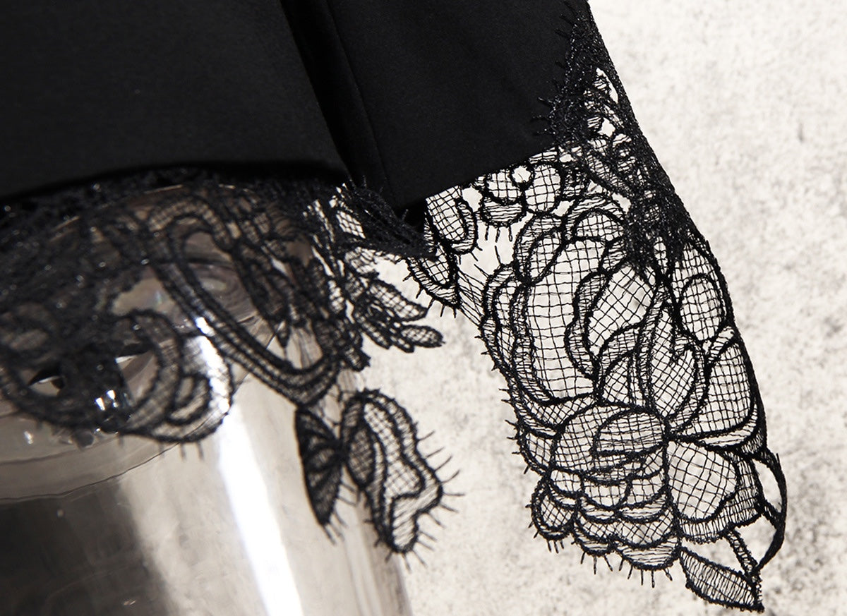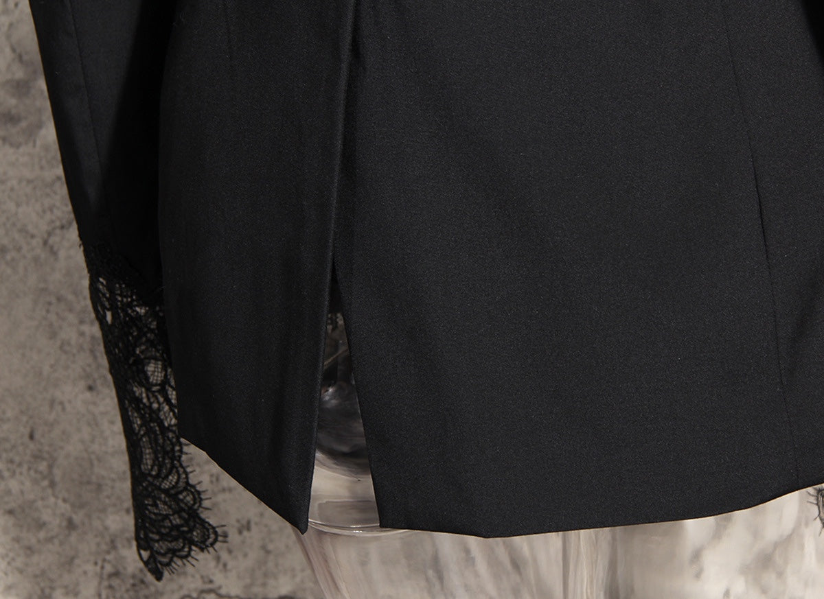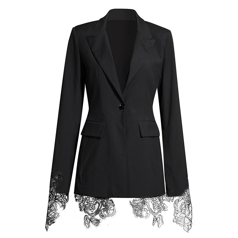 Discover sophistication and elegance with our Fornax Women's Blazer. The black Fried Street design incorporates delicate machine embroidery and lace patchwork, enhancing your waistline for a slimming effect. The draping coat adds a touch of luxury to your wardrobe, perfect for the spring season. Elevate your style with our exclusive blazers.