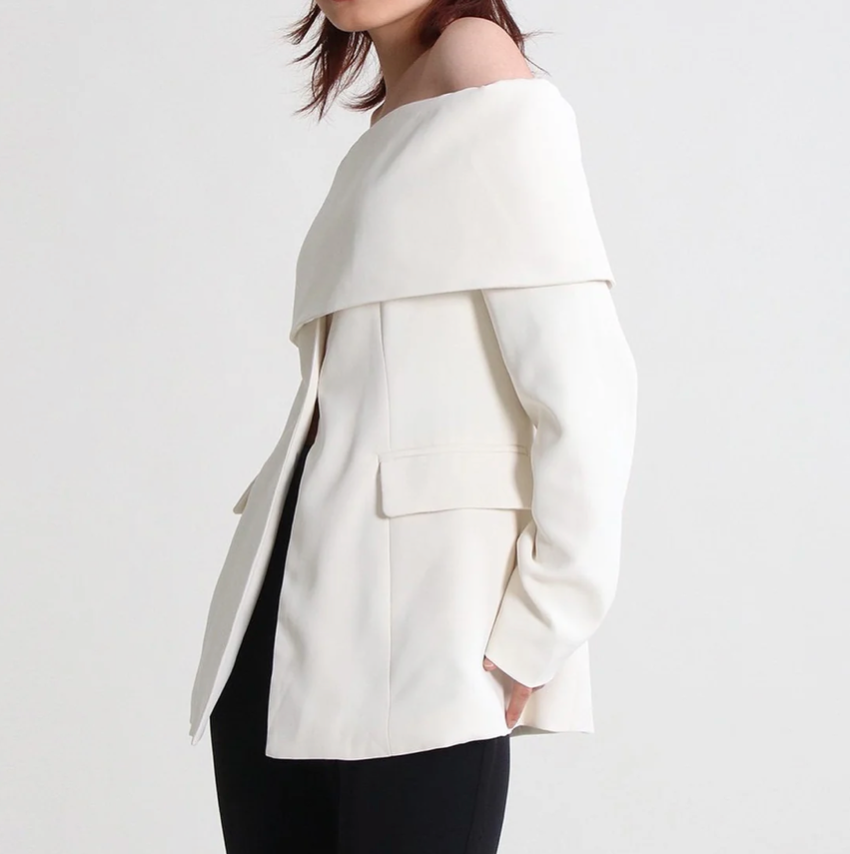 Take a fashion risk with our Allaire Off Shoulder Blazer! The off shoulder style and strapless design create a bold look, while the long sleeves keep it practical. The addition of a pocket adds convenience to this adventurous coat. Be the center of attention in this autumn essential.