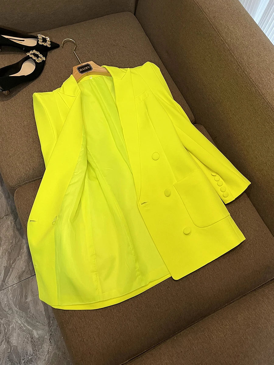 Elevate your office wardrobe with this sophisticated Mountmorres Blazer Suit. The double-breasted shrug adds a touch of luxury, while the elastic waist pants provide comfort and style. The loose blazer accentuates your shoulders, creating a powerful and elegant silhouette. Perfect for any season, this suit will elevate your professional look.