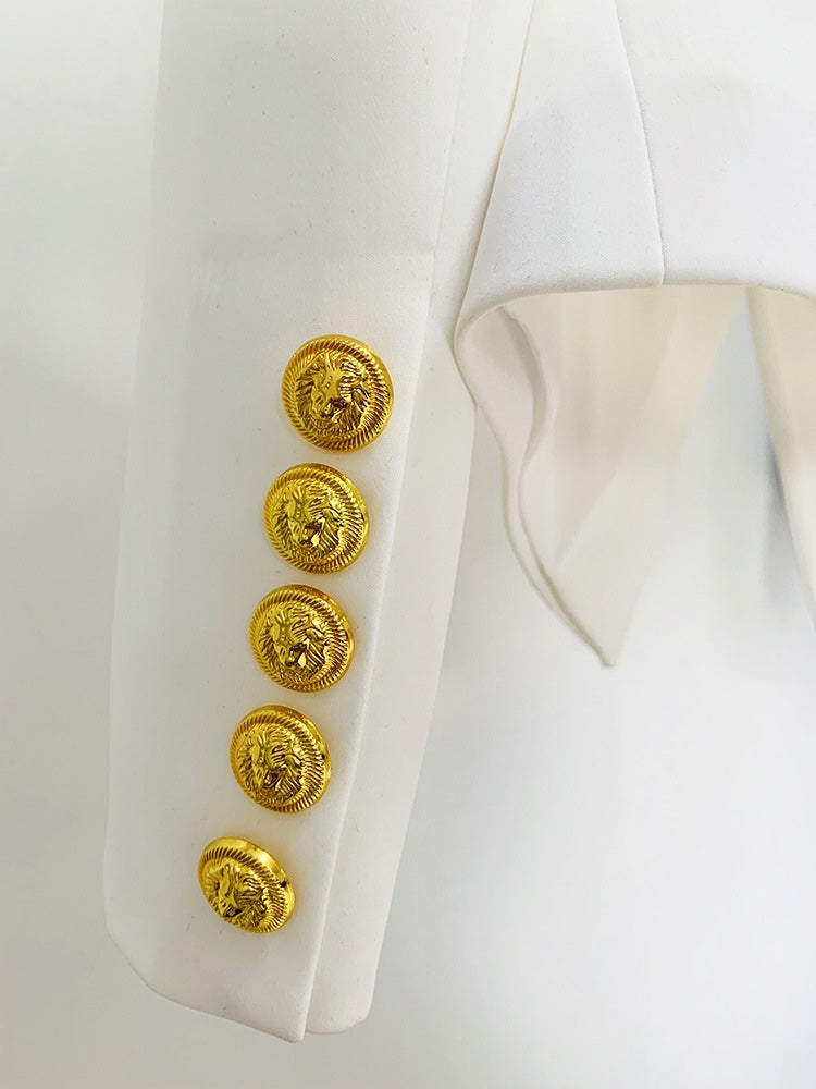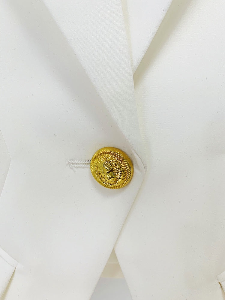 Unleash your inner fashionista with our Belmar Blazer Jacket! This daring blazer features a fierce lion buckle that exudes confidence and strength. With a slim profile and bold one-button design, you'll stand out from the crowd and make a strong statement wherever you go.