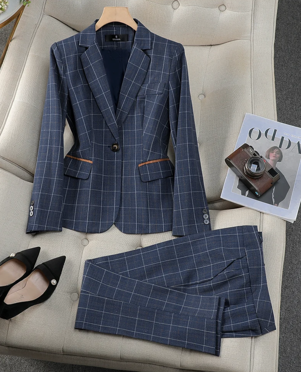 Introducing the Oyster Bay Two Piece Suit; a sophisticated and exclusive option for the modern woman. This Spring Autumn New Retro Plaid Elegant Blazer Coat and High Waist Wide Leg Pant set exudes elegance and luxury. Elevate your business attire with this premium suit.