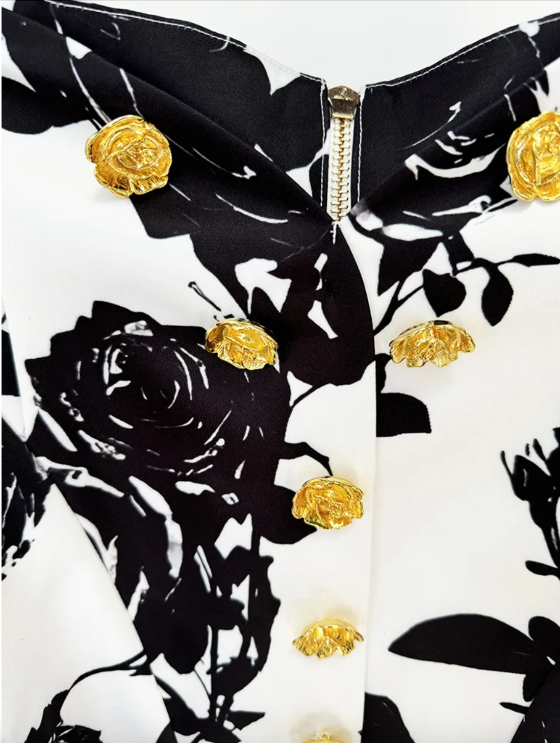 Elevate your style with our floral high waist Palais Mini Skirt. Made for the fashion-forward lady, this single-breasted skirt features a unique floral print that adds a touch of elegance to your look. Its high waist design elongates your silhouette, creating a flattering and sophisticated look. Perfect for a day out in town or a special occasion.