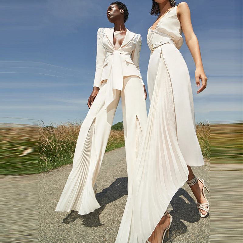 This Pleated zipper trousers with blazer 2-piece suit set is designed to make a statement at any social event. The pleated trousers offer a sophisticated and flattering fit, while the lace-up detailing adds a touch of elegance. The blazer features a zipper closure for a modern twist, and the set is made from high-quality materials to ensure comfort and durability. Whether you're attending a formal gathering or a night out with friends, this 2-piece suit set is the perfect choice to showcase your fashion-forward sense of style.