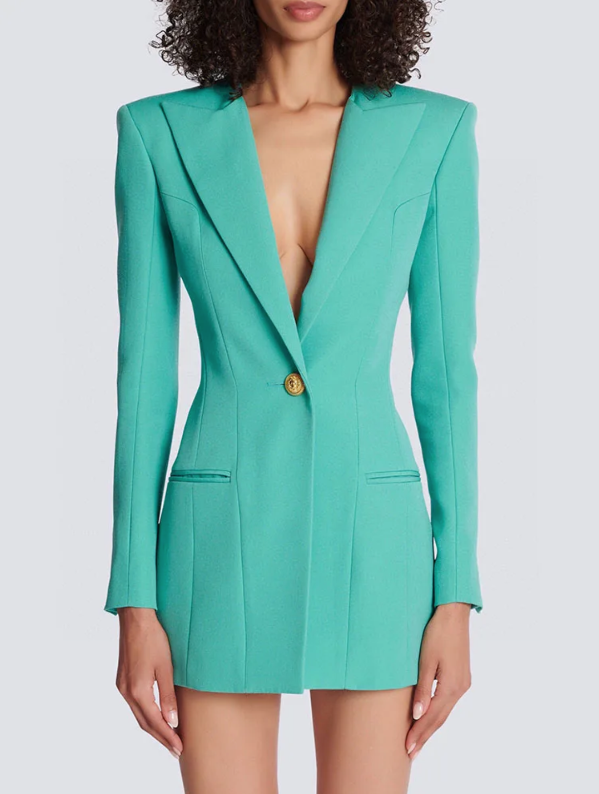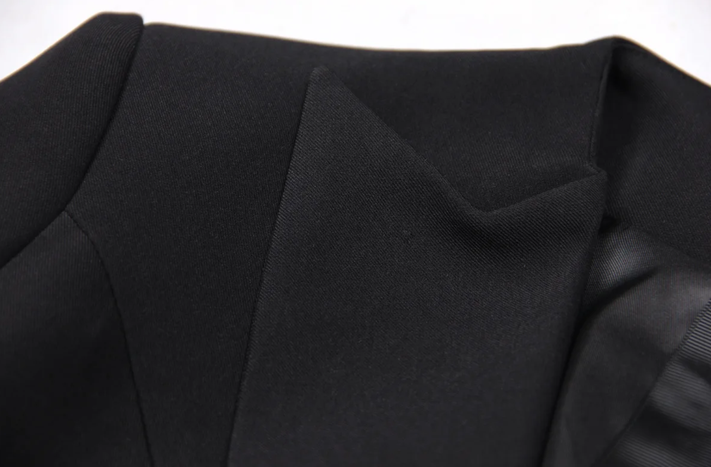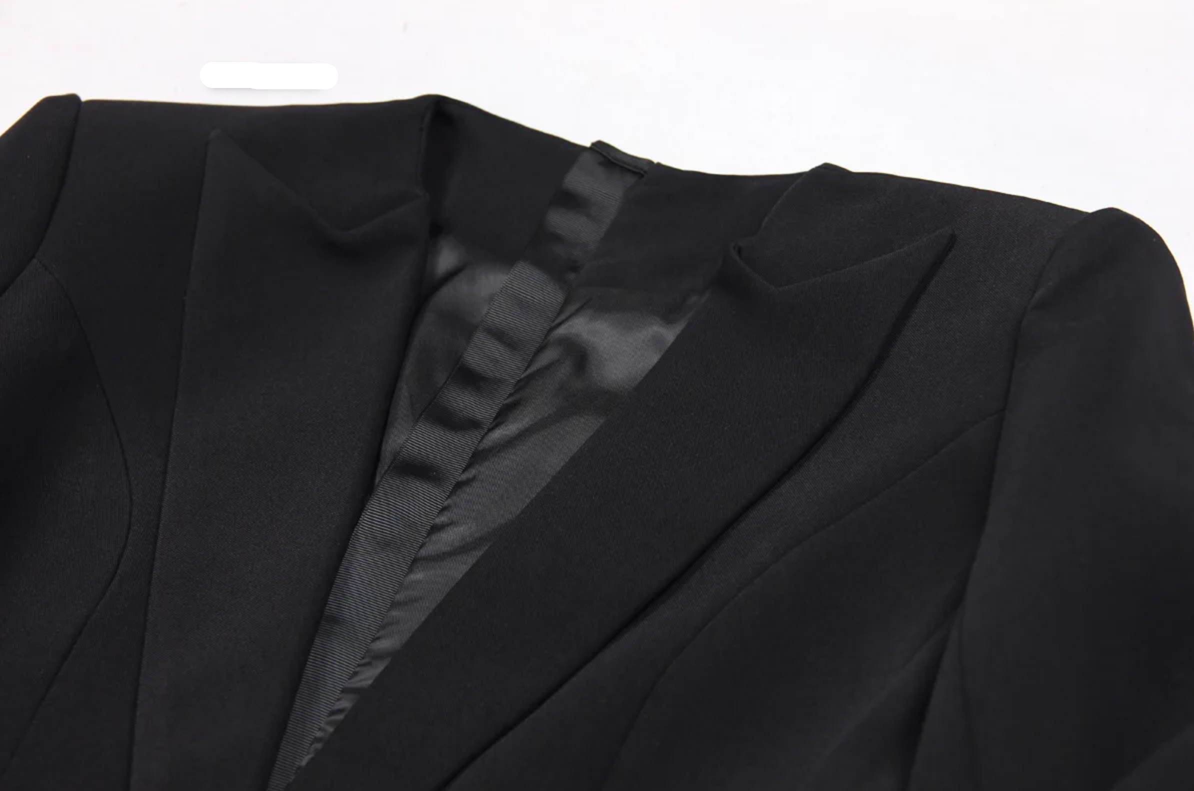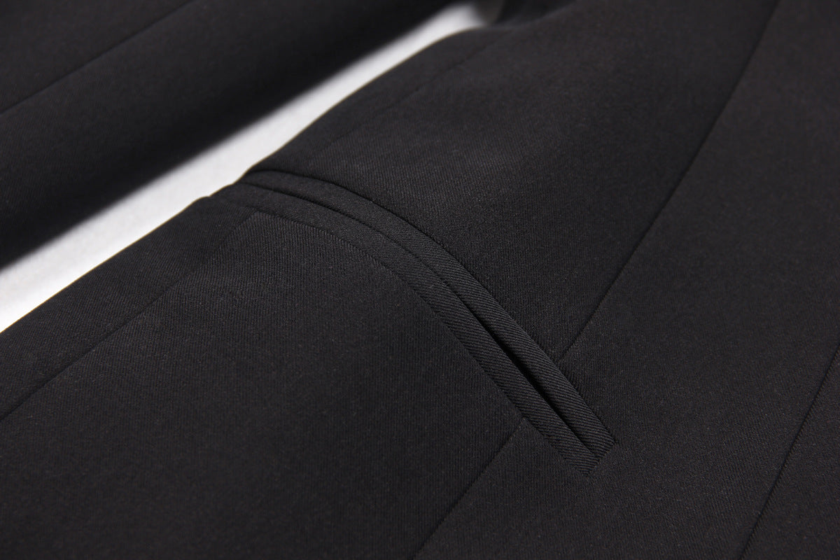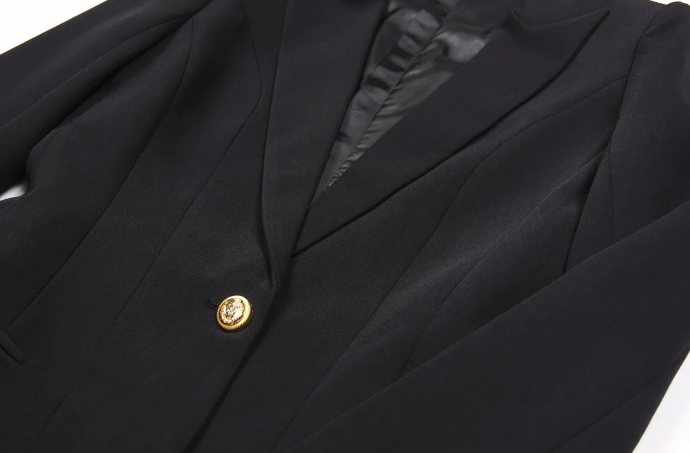 Meet our elegant business blazer dress suit, expertly crafted from a lightweight fabric, perfect for the spring and autumn seasons. This sophisticated ensemble features a high solid color design, complemented by long sleeves, and gold ornate buttons, with a regular fit tailored to enhance the silhouette. Ideal for office wear, this dress exudes professionalism and style, making it a must-have for business-savvy women. Available in Black, Khaki, and Turquoise.
