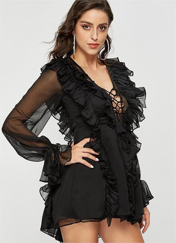 Transform your wardrobe with this playful and figure-flattering Bloomfield Meadows Summer Dress. Featuring a ruffled waist, slimming V-neckline, and lace-up details, this dress is perfect for those warm spring and summer days. Channel your inner fairy and feel super sweet while looking effortlessly stylish.