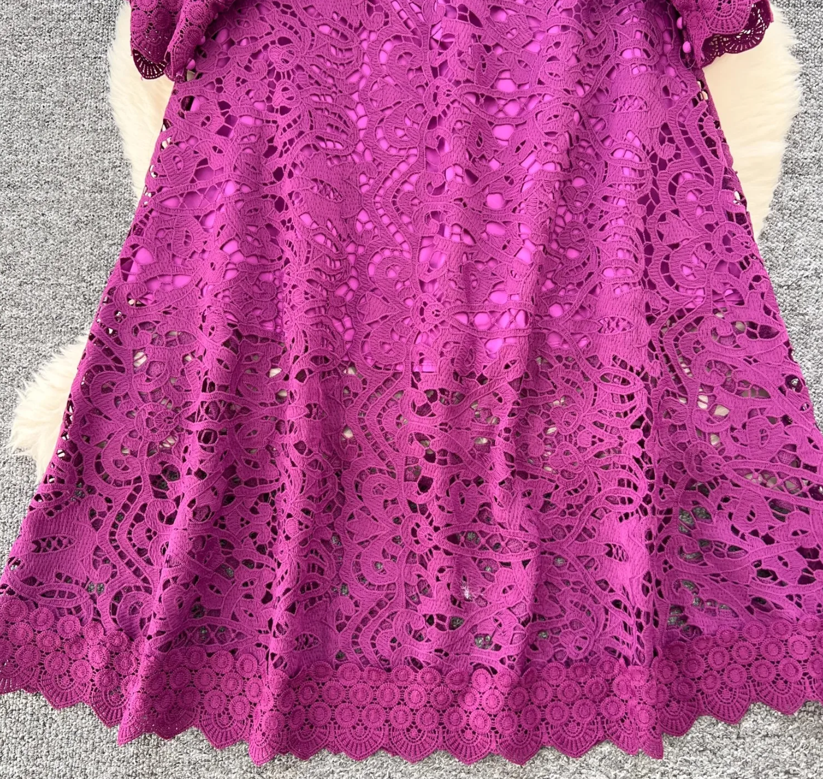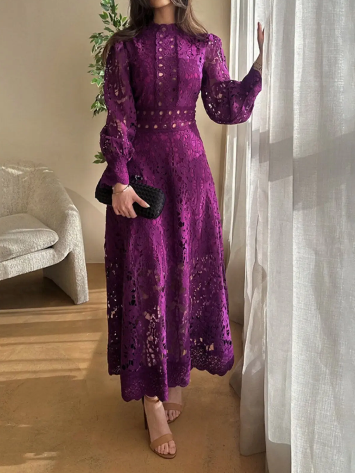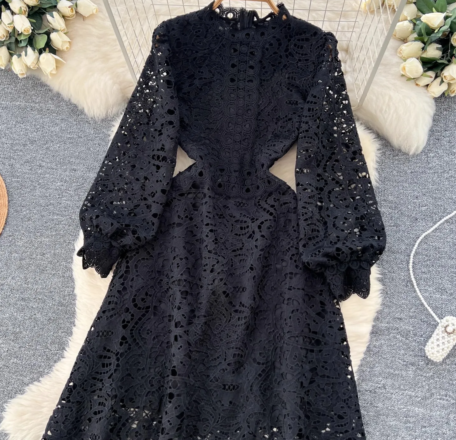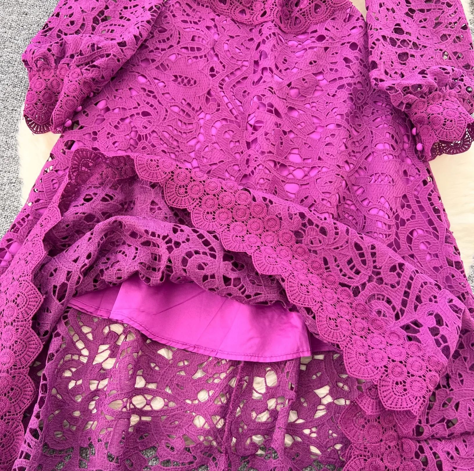 Indulge in the luxurious elegance of our Sun and Sand Crochet Dress. Featuring delicate flower embroidery and intricate lace details, this midi dress exudes sophistication. The lantern sleeves and stand collar add a touch of drama, while the crochet cutouts enhance the overall design. Elevate your style with this exclusive piece.