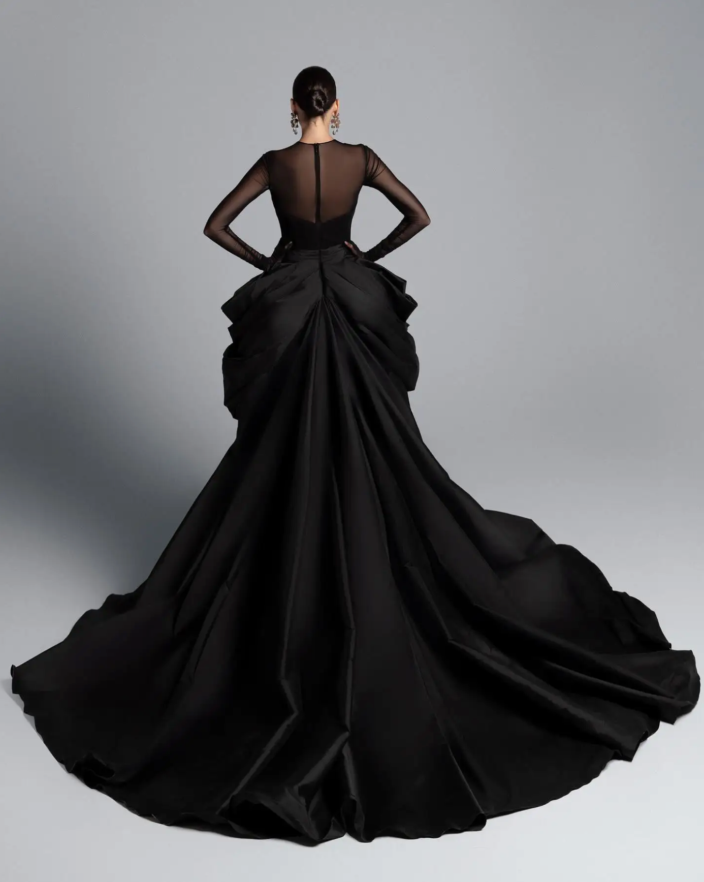 Experience the bold allure of the Tor di Nova Gown. This provocative A-line masterpiece commands attention with its daring high split and seductive see-through sleeves. Crafted from luxurious satin with strategic ruching, this floor-length stunner balances sensuality with sophistication. The illusion elements and O-neck design frame your natural waistline perfectly, making this couture creation the ultimate statement for those who aren't afraid to turn heads at evening affairs.