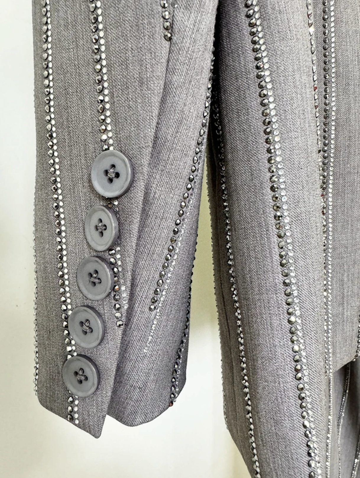Elevate your wardrobe with our Venezia Vista Two Piece Set. This chic and sophisticated set features a solid lapel coat with long sleeves and pockets, paired with high-waisted pants for a high-end fashion statement. Perfect for the modern, fashionable woman looking for elegance and versatility.