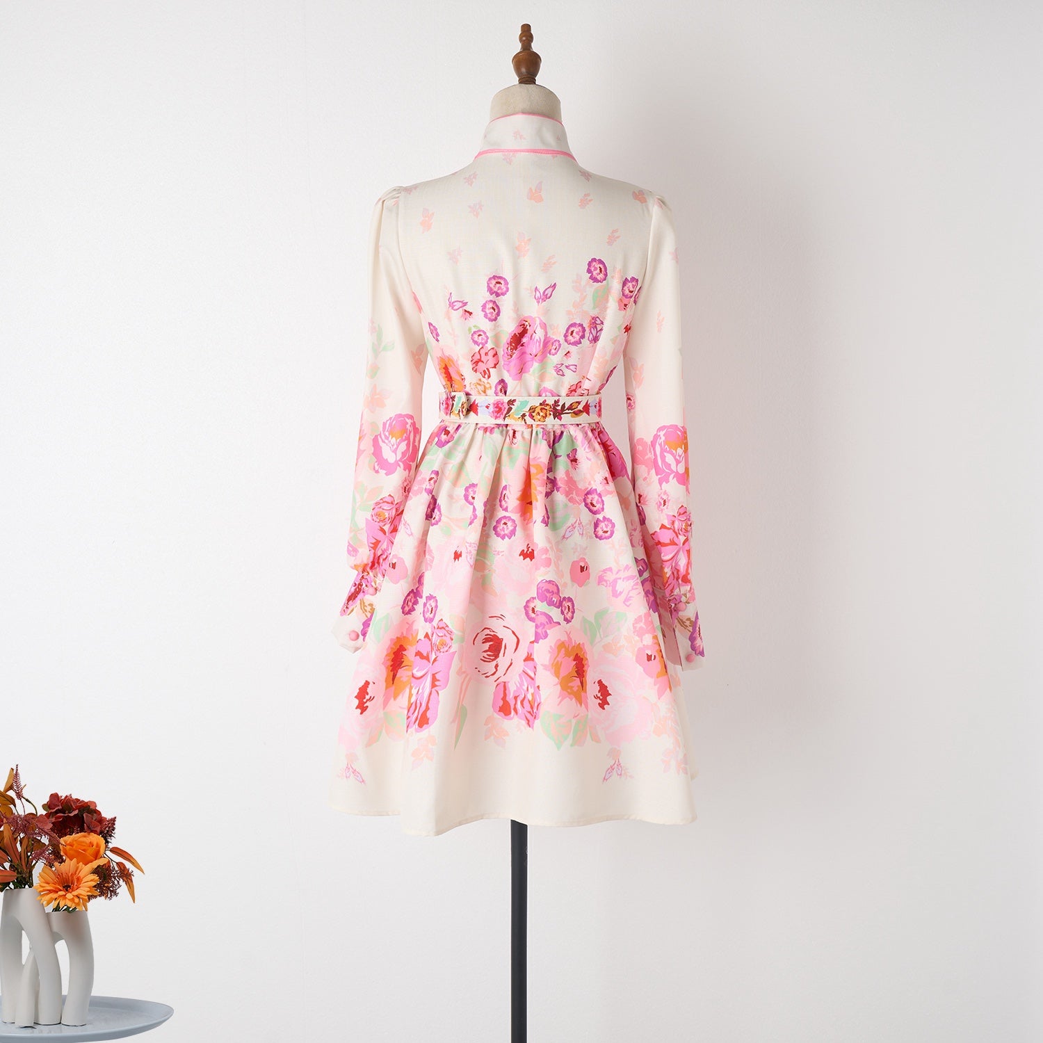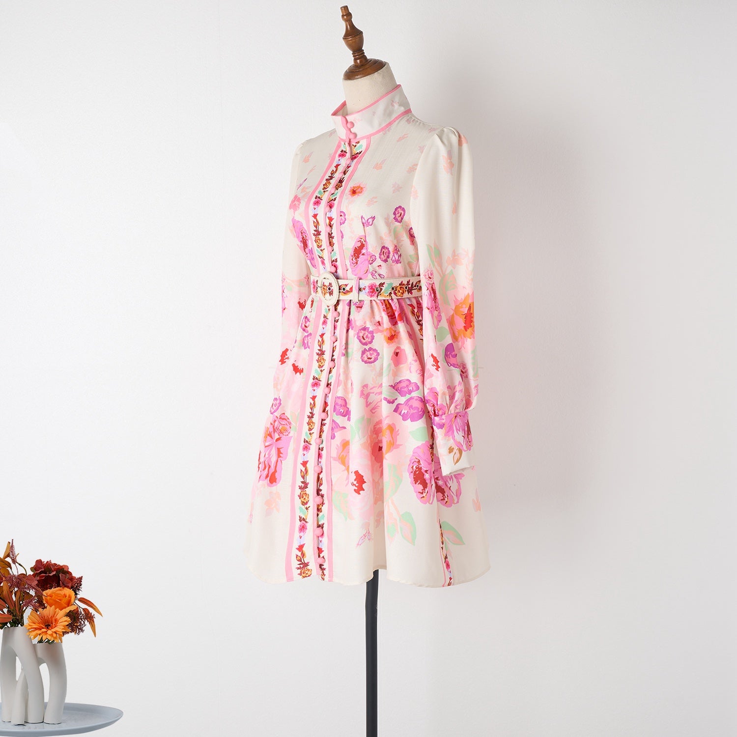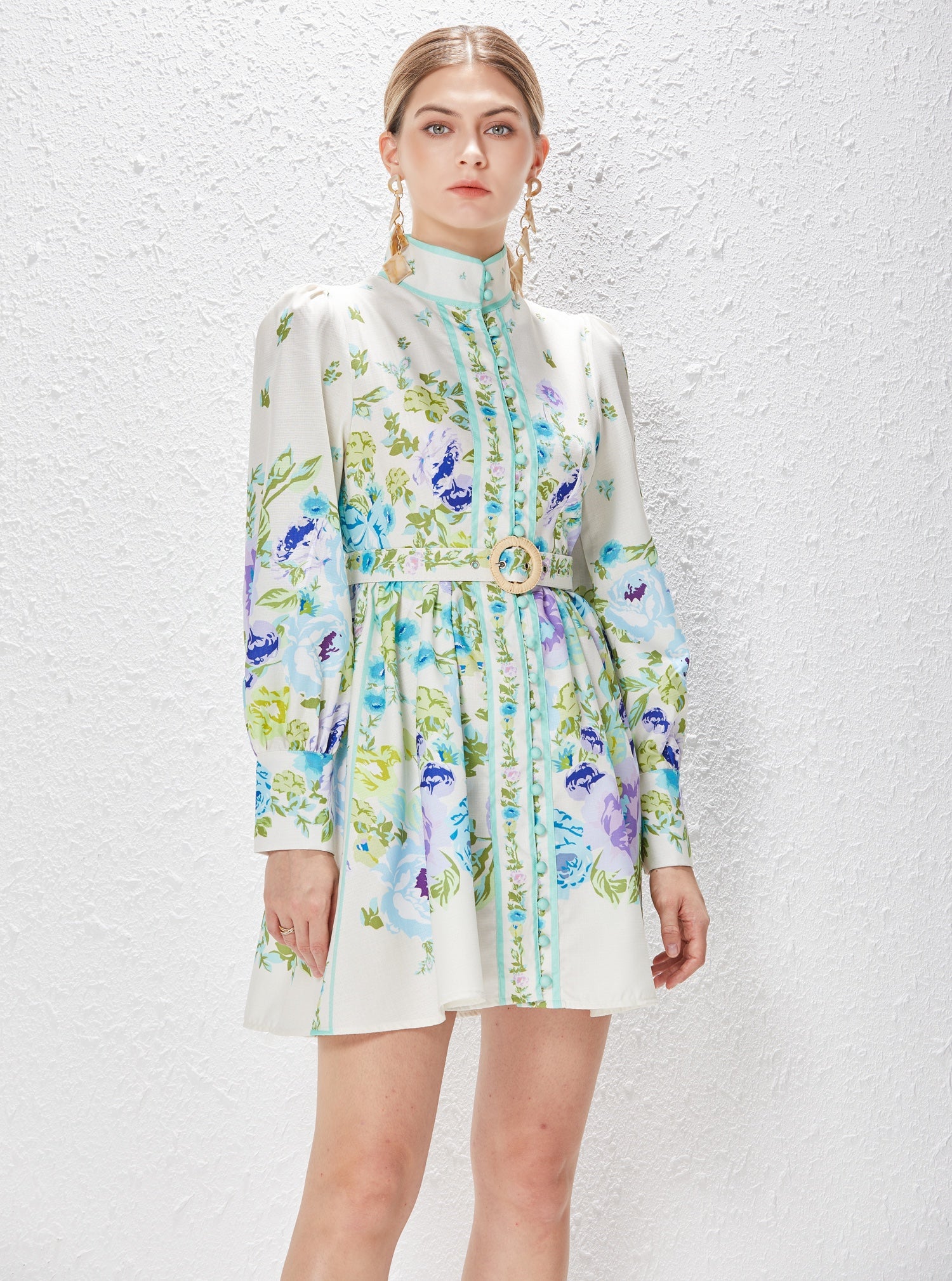 Slip into vintage charm with this Blooming Bouquet Mini. Featuring a stand collar, single breasted design, and waist slimming fit, this sweet dress also comes with a stylish waist belt. Perfect for adding a touch of playfulness to your wardrobe.