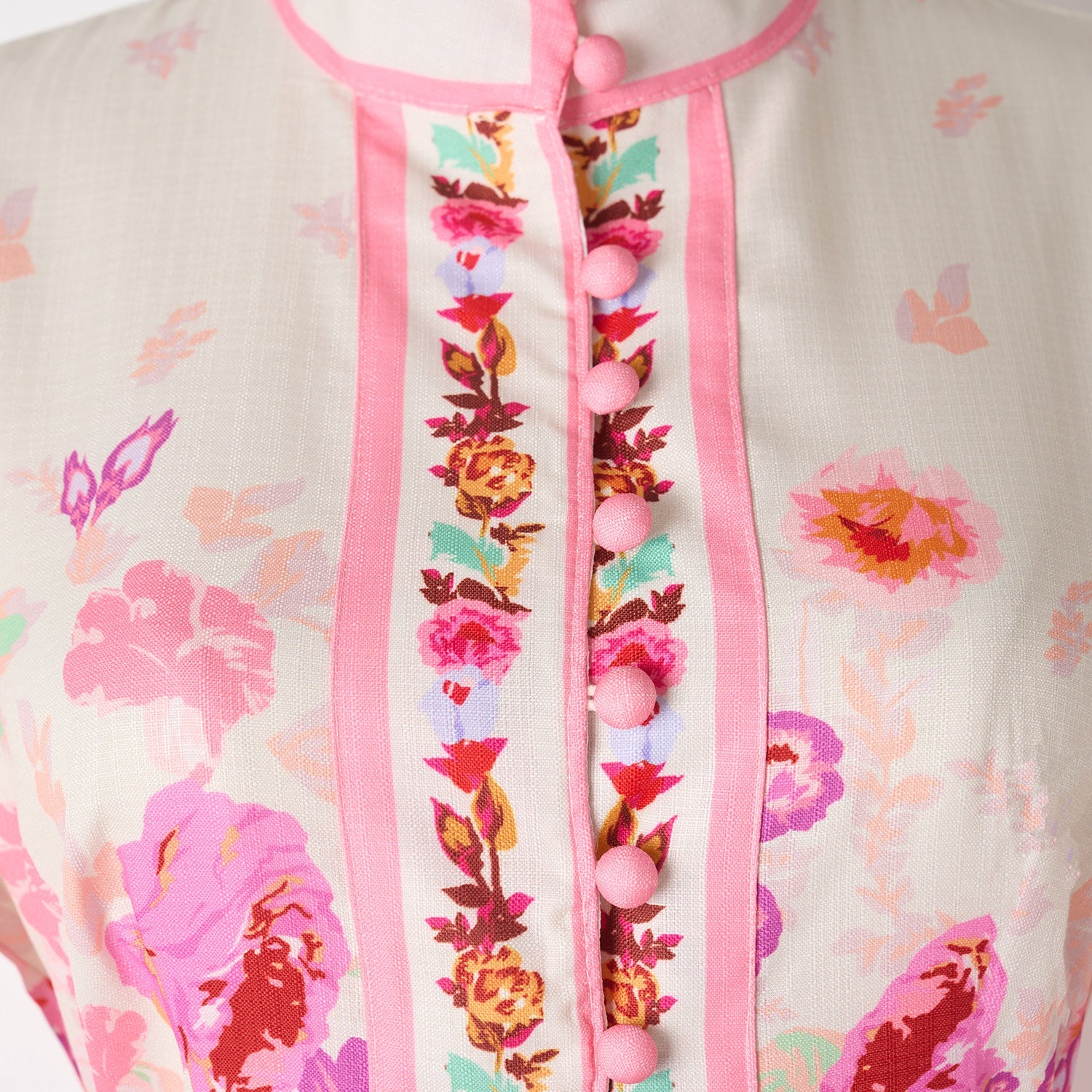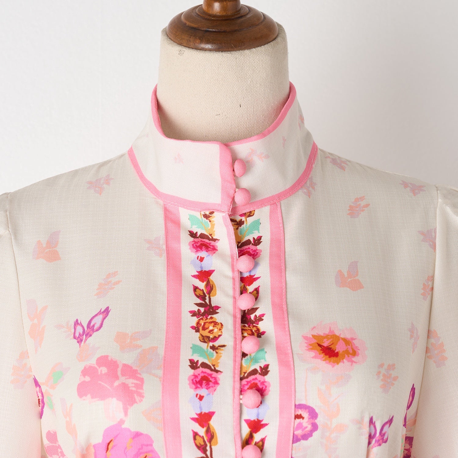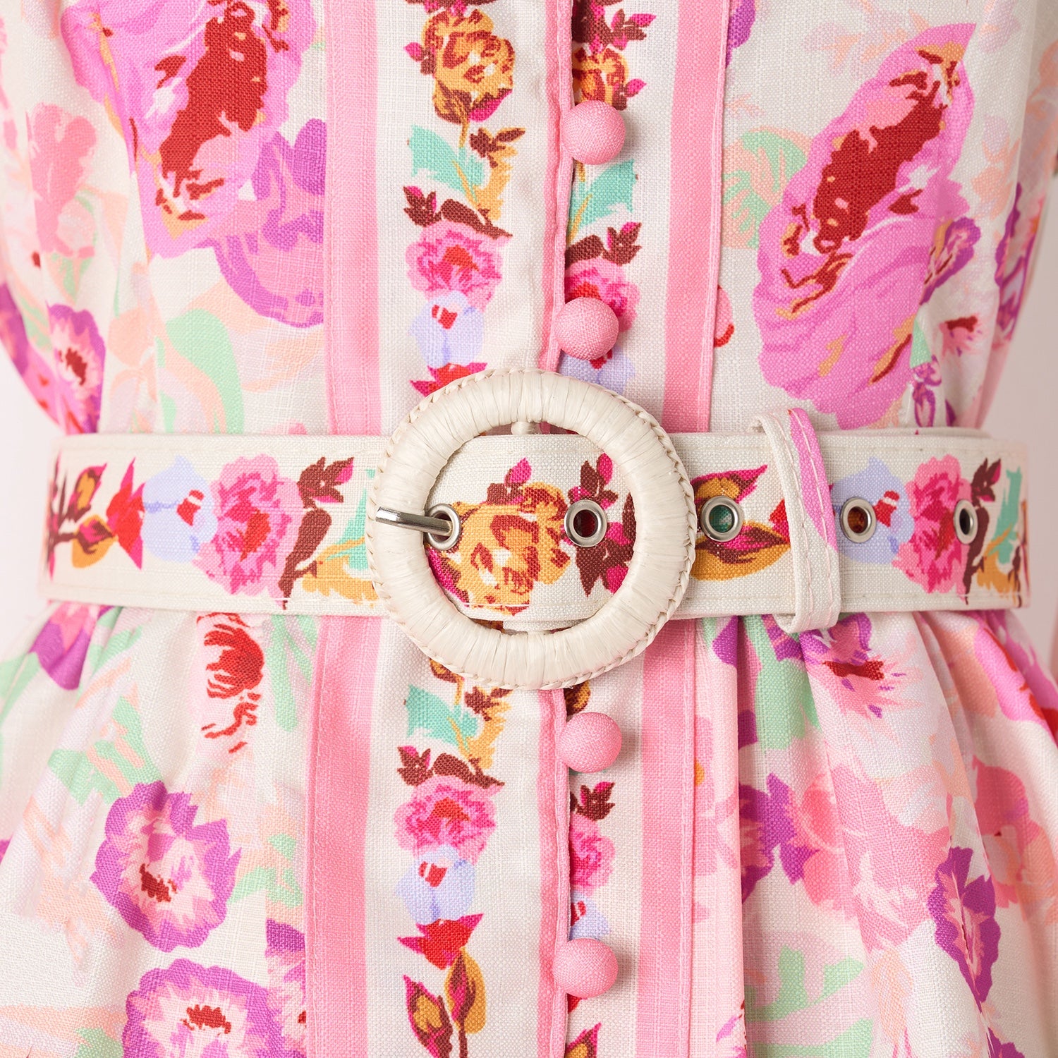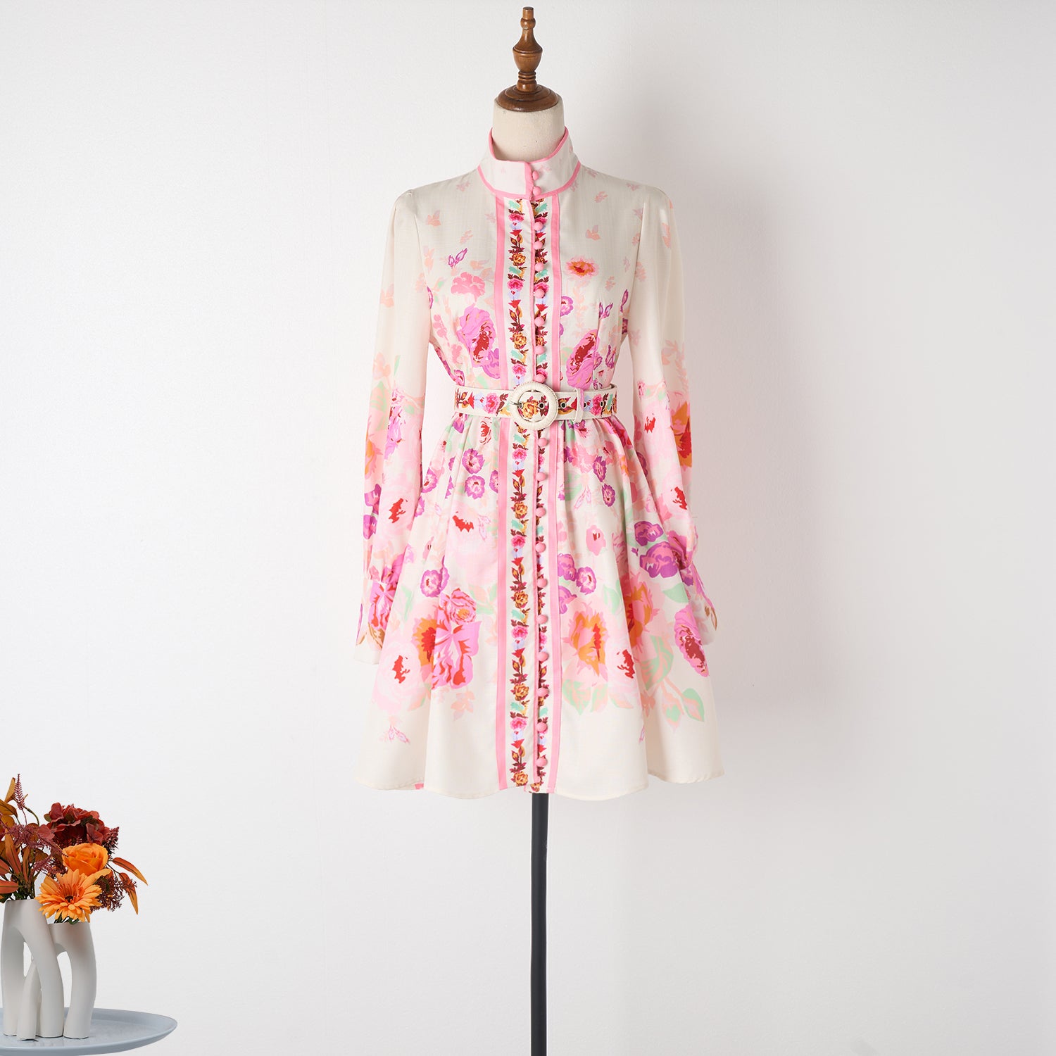 Slip into vintage charm with this Blooming Bouquet Mini. Featuring a stand collar, single breasted design, and waist slimming fit, this sweet dress also comes with a stylish waist belt. Perfect for adding a touch of playfulness to your wardrobe.