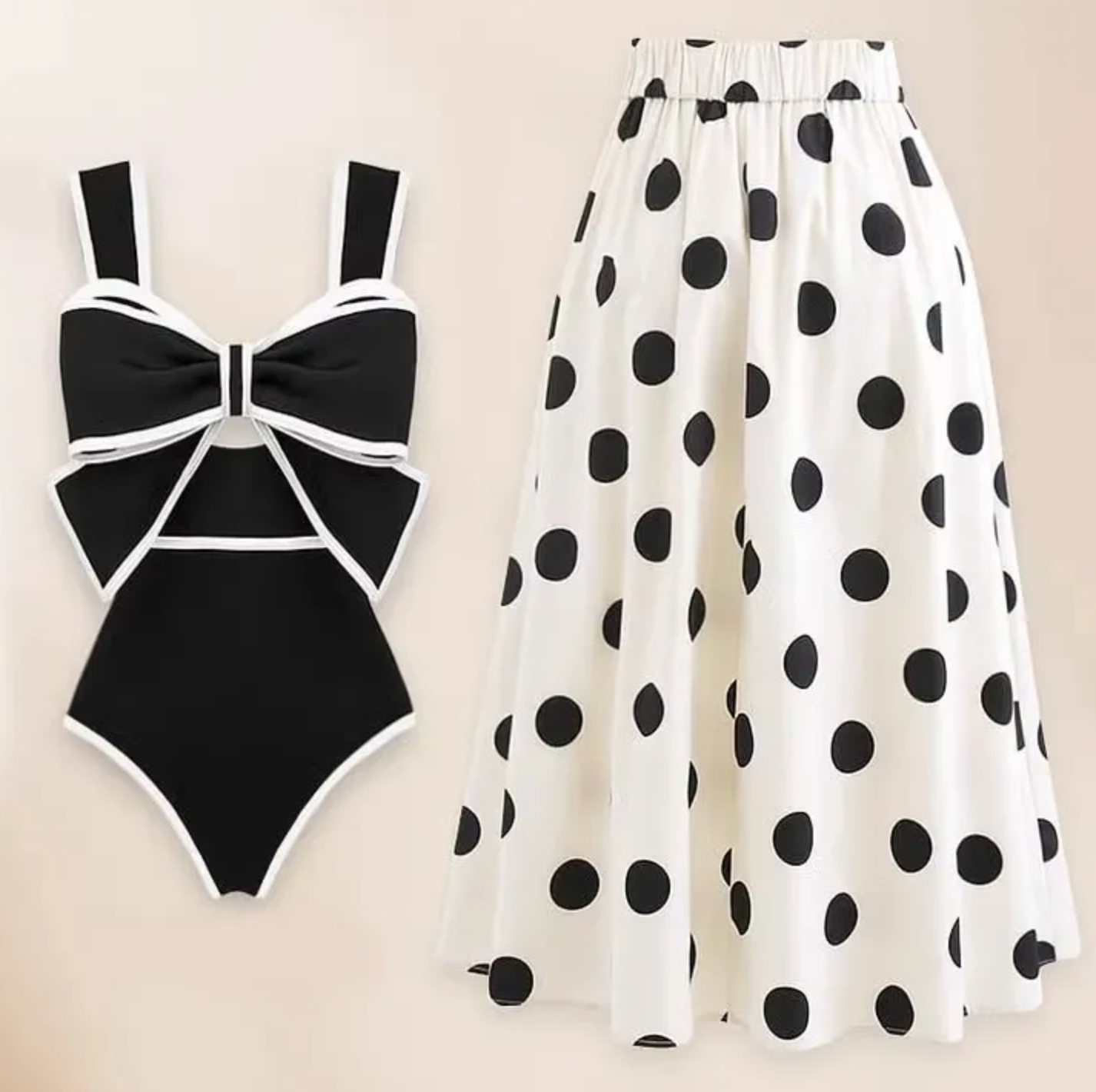 Introducing Wave Watcher Swimwear - our sexy two-piece swimsuit exudes elegance with its niche design and polka dots. Perfect for swimming or hot spring getaways. A must-have for those seeking a new and sophisticated resort look.