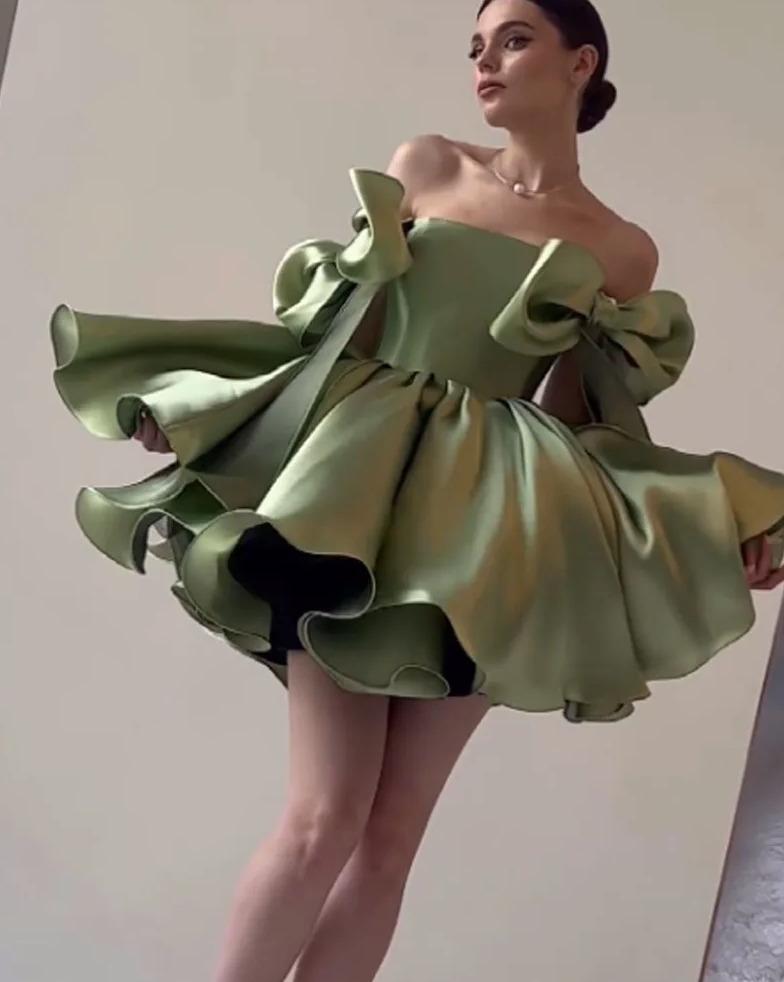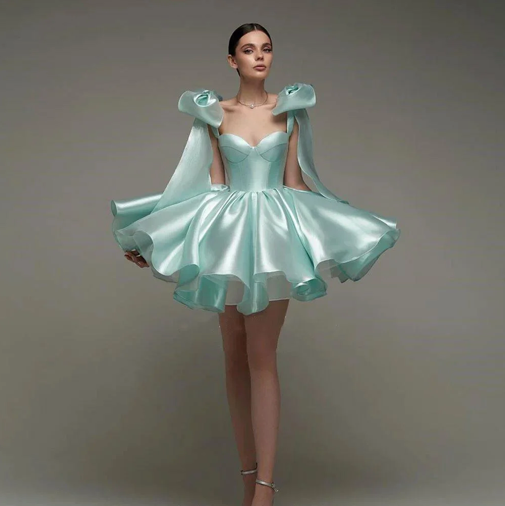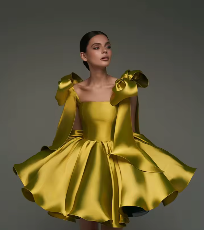 Step into the spotlight with the Wekiva Mini Dress, a daring blend of elegance and playful charm. This sweetheart ball gown features satin straps and a delicate bow that accentuates its sleeveless, above-the-knee design. Crafted from smooth, candy-colored satin, its empire waistline flatters your silhouette while the bows add a touch of whimsy.